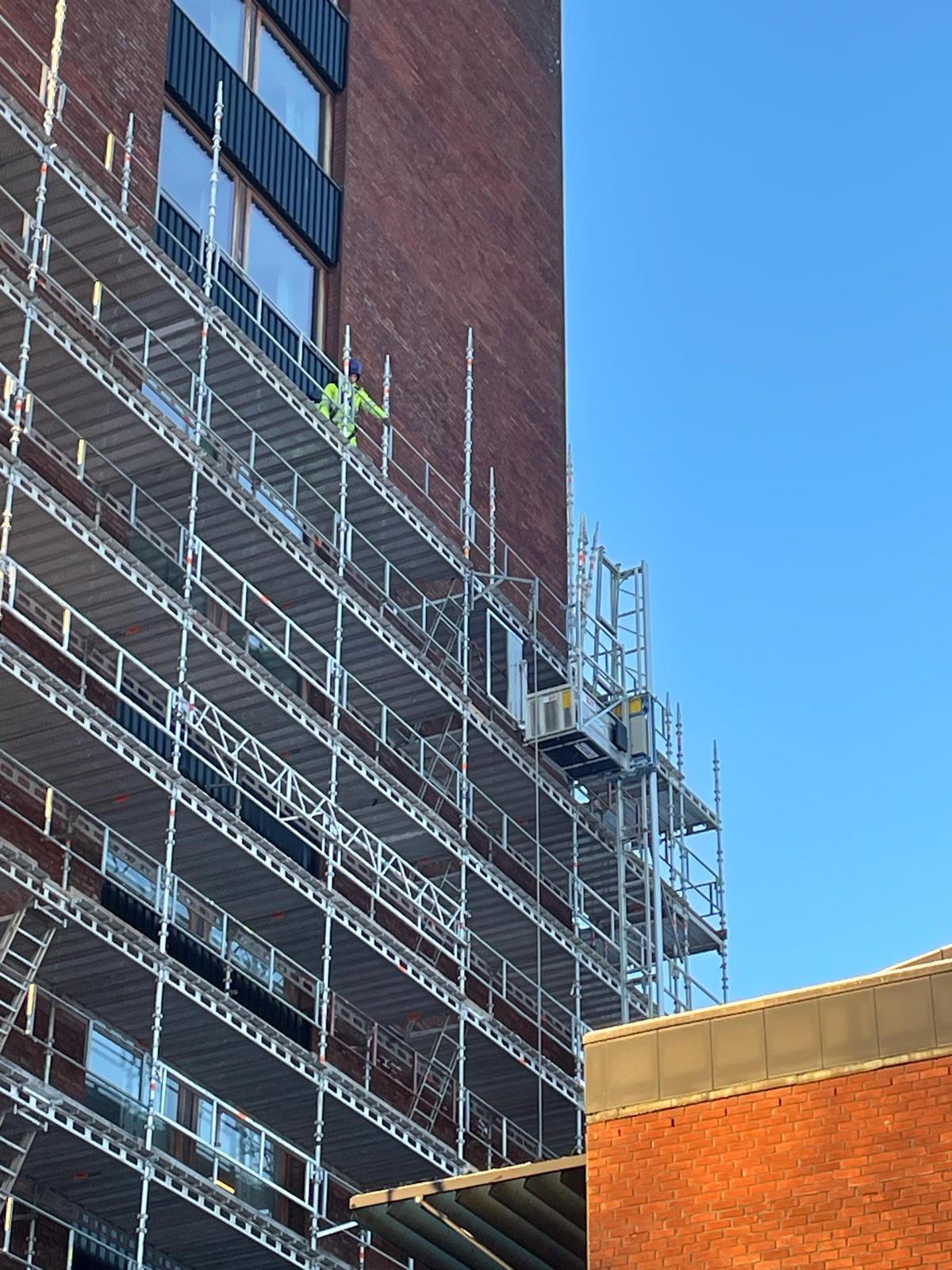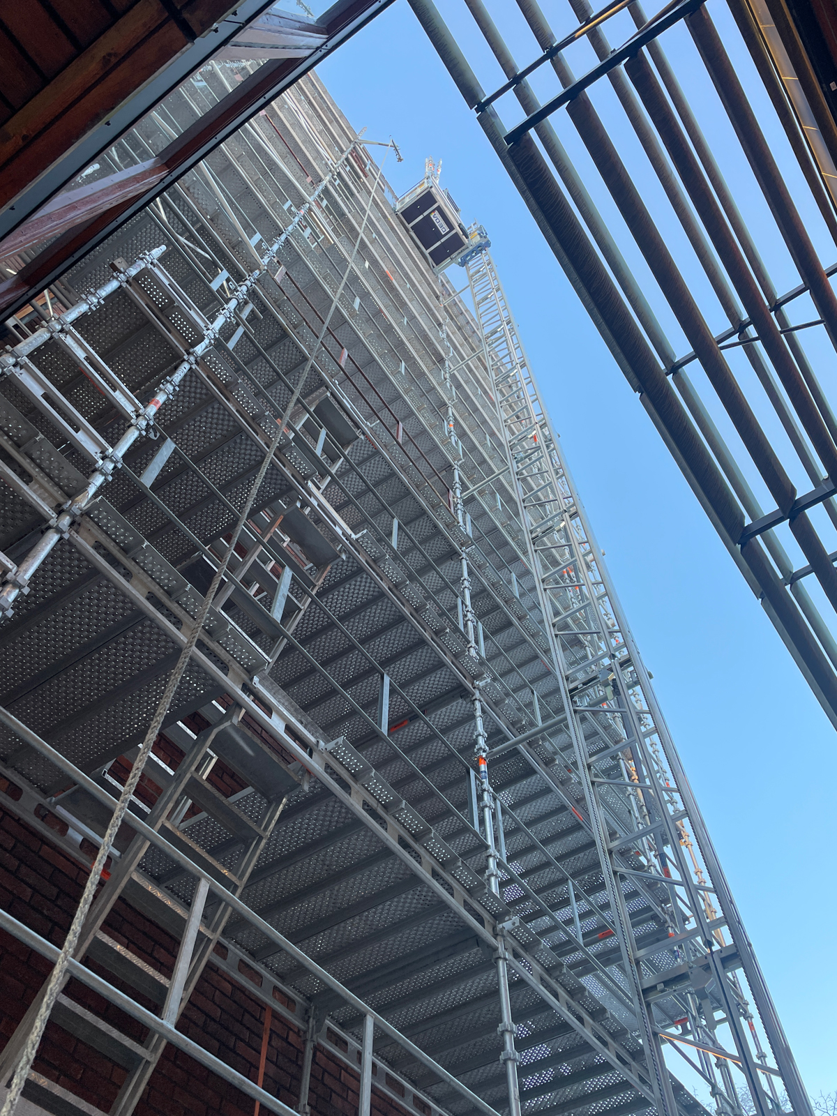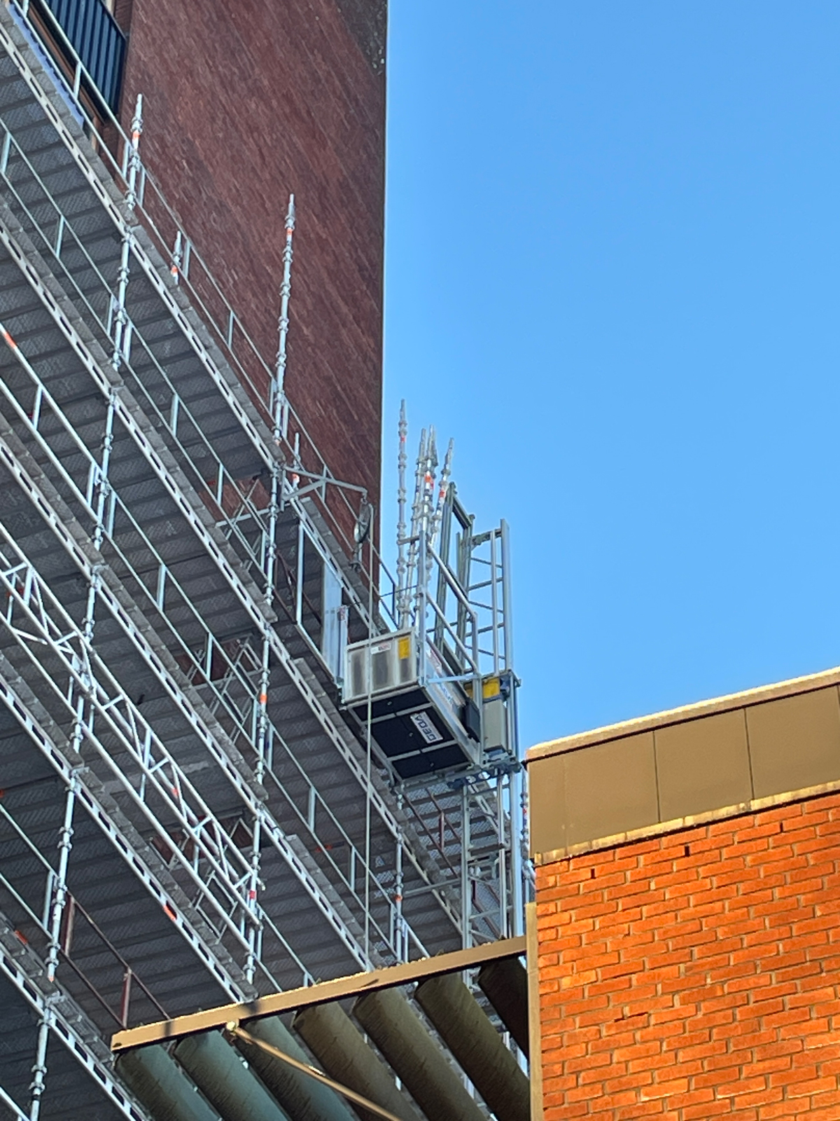 Auf der nächsten Baustelle in Norwegen, ebenfalls in Oslo, kommt der neue Geda Materialaufzug erneut zum Einsatz. Hier erreicht das Gerüst eine Höhe von 50 m. Für den Aufbau des HAKI- und Solideq-Gerüsts wurde der Materialaufzug bis zu einer Förderhöhe von 30 m eingesetzt. Der Einsatz erfolgte in enger Zusammenarbeit mit dem Unternehmen Brenden & Co. Gerüstverleih (Brenden og Co. stillas utleie AS. Der Geda 200 Z Comfort stellt ein wichtiges Beispiel für die Rentabilität von neuen Geräten in der Mietflotte von Vermietern dar.