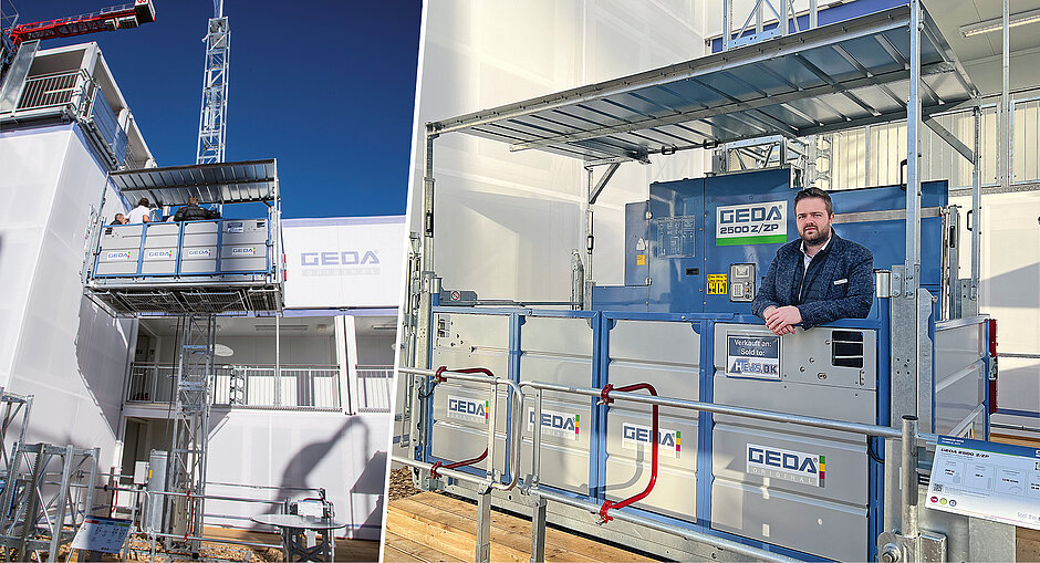 Als Weltneuheit hat der Industrie- und Bauaufzughersteller GEDA aus Asbach-Bäumenheim auf der Bauma die Transportbühne 2500 Z/ZP vorgestellt, die aufgrund des Svario-Mastes an nur einem Mast geführt wird und eine Tragfähigkeit von 2 500 kg aufweist. Seit fast 60 Jahren ist das mittelständische Unternehmen auf der Bauma vertreten und kann wohl als »Urgestein« bezeichnet werden.
