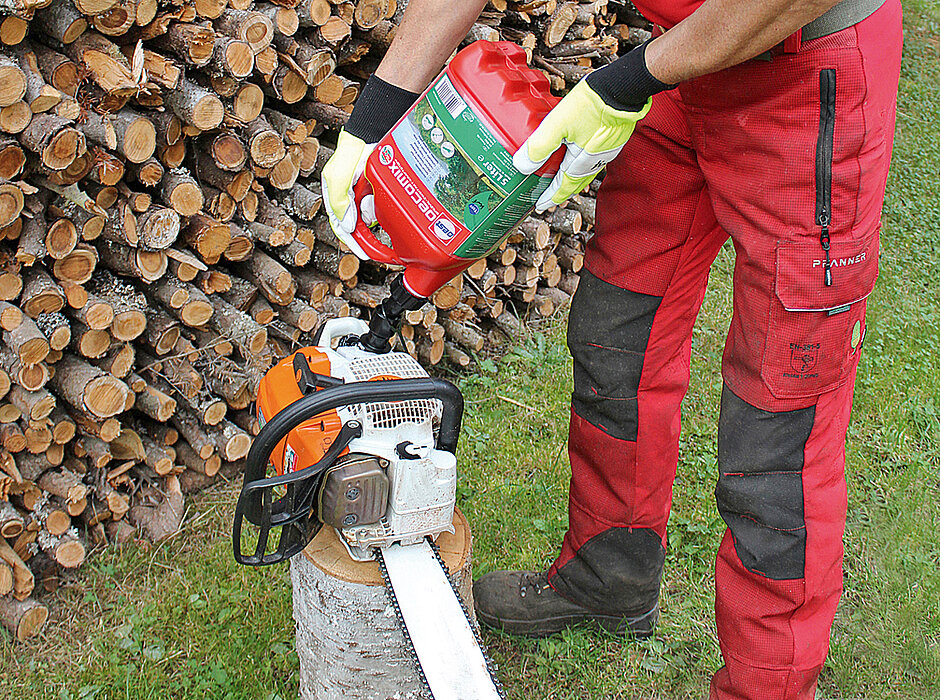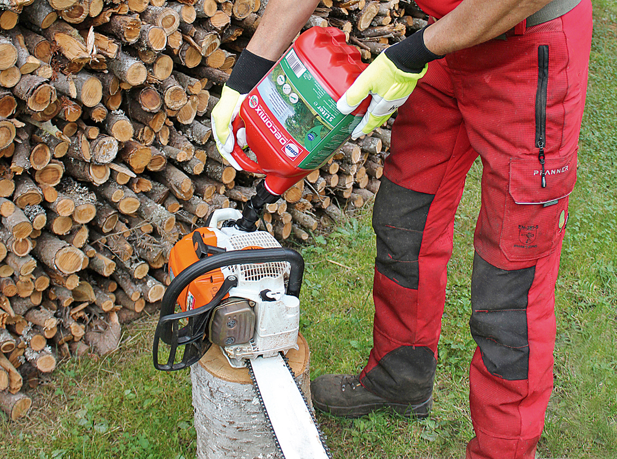 Zum Oest-Sortiment gehören beispielsweise Motoren-, Getriebe- und Hydrauliköle, aber auch biologisch leicht abbaubare Spezialschmierstoffe. Hierzu zählt auch Oest Biosynt, ein Sägekettenhaftöl, das entsprechend den Richtlinien des Umweltbundesamtes für biologisch abbaubare Schmierstoffe mit dem »Blauen Engel« sowie mit dem EU-Eco-Label ausgezeichnet wurde. »Oest Biosynt wird aus pflanzlichen Grundölen und toxikologisch unbedenklichen Zusatzstoffen hergestellt, die die Umwelt nicht belasten, weil sie dort von Mikroorganismen innerhalb kurzer Zeit abgebaut werden«, erläutert Oest-Vertriebsleiter Gerald Wölfel. Das hochwertige Sägekettenöl besitze außerdem ein sehr günstiges Viskositäts-Temperatur-Verhalten, besonders gute Kältebeständigkeit und aufgrund seiner Haft- und Schmiereigenschaften einen hohen Schutz vor Verschleiß und Korrosion bei wirtschaftlichem Verbrauch. »Die besondere Nachhaltigkeit spiegelt sich nicht nur in der Rezeptur wider, sondern auch in der Verwendung ressourcenschonender 5-l- und 20-l-Kanister mit einem hohen Recycling-Anteil«, so Wölfel weiter.