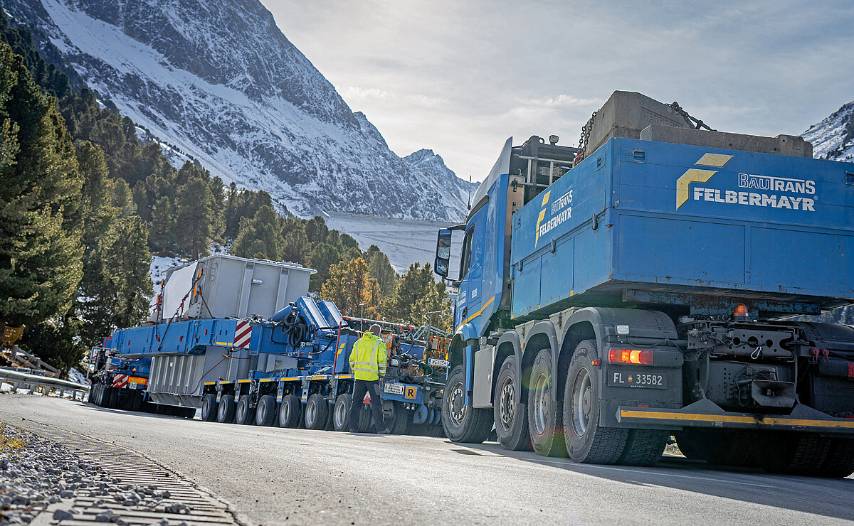 Die Felbermayr Group zählt zu den führenden Spezialisten in den Geschäftsfeldern Bau sowie Transport- und Hebetechnik. Mit über 3 300 Mitarbeitenden an 81 Standorten in 17 Ländern steht das Familienunternehmen für Verlässlichkeit und höchste Sicherheitsstandards. Das Tiwag-Großprojekt Kühtai 2 ist ein zentraler Baustein für die Energiewende in Österreich. Mit einer Leistung von rund 190 MW und einem neuen Speichersee auf über 2 100 m Höhe wird das Pumpspeicherkraftwerk künftig flexible Netzstabilisierung und CO₂-Einsparungen von über 120 000 t pro Jahr ermöglichen. Für den Transport der Transformatoren ins hochalpine Gelände war eine Lösung gefragt, die sowohl maximale Flexibilität als auch enorme Zugkraft bietet. Der 140 t schwere Transformator wurde per Bahn nach Zirl transportiert und dort auf eine Schwerlast-Modul-Kombination umgeladen.