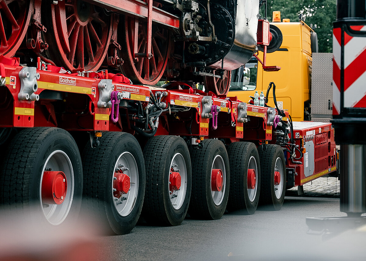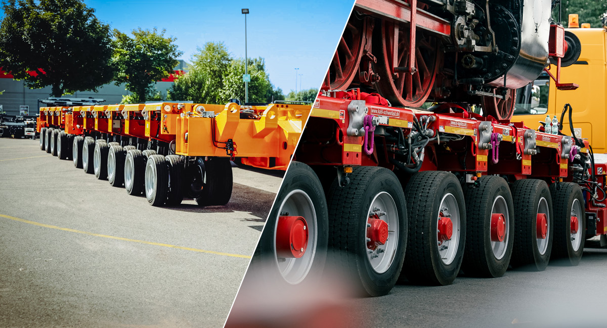 Ebenfalls ein Highlight für die Schwerlastbranche ist der PST/ES-E (315): Mit Achslasten von bis zu 60 t bei luftgefüllten Reifen und ohne TPMS können schwerste Lasten mit deutlich weniger Achslinien bewegt werden – und das ganz ohne Laufleistungsbeschränkung. Das 2.430 mm breite Schwerlast-Modul kann dabei wirtschaftlich in Flatracks transportiert werden.