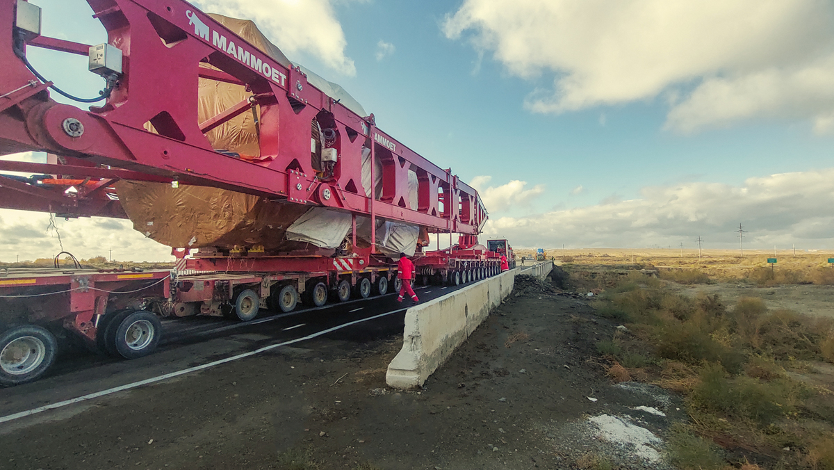 Wegen der Geländetopografie auf der Strecke wurde die Route in drei Abschnitte eingeteilt. Jeder verlangte eine zugeschnittene Lösung, für die Mammoet Kazakhstan seine variablen Goldhofer-Schwerlastmodule THP/SL einsetzte. In Verbindung mit zwei Goldhofer-Addrive-Modulen, die über Addronic synchronisiert wurden, waren in der Spitze rund 68 Achslinien im Einsatz.