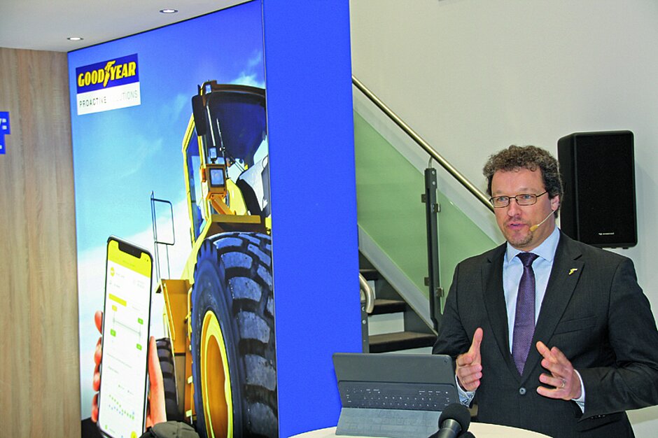 Aus dem Bereich der Digitalisierung hatte Goodyear ebenfalls etwas im Gepäck: David Anckaert stellte das Reifendruckkontrollsystem (RDKS) Heavy Duty vor: Es ist mit spezieller Analysetechnologie gekoppelt und soll dem Fahrzeug- oder Maschinenführer im OTR-Einsatz ein nützliches Reifen-Monitoring bieten – und das in Echtzeit.