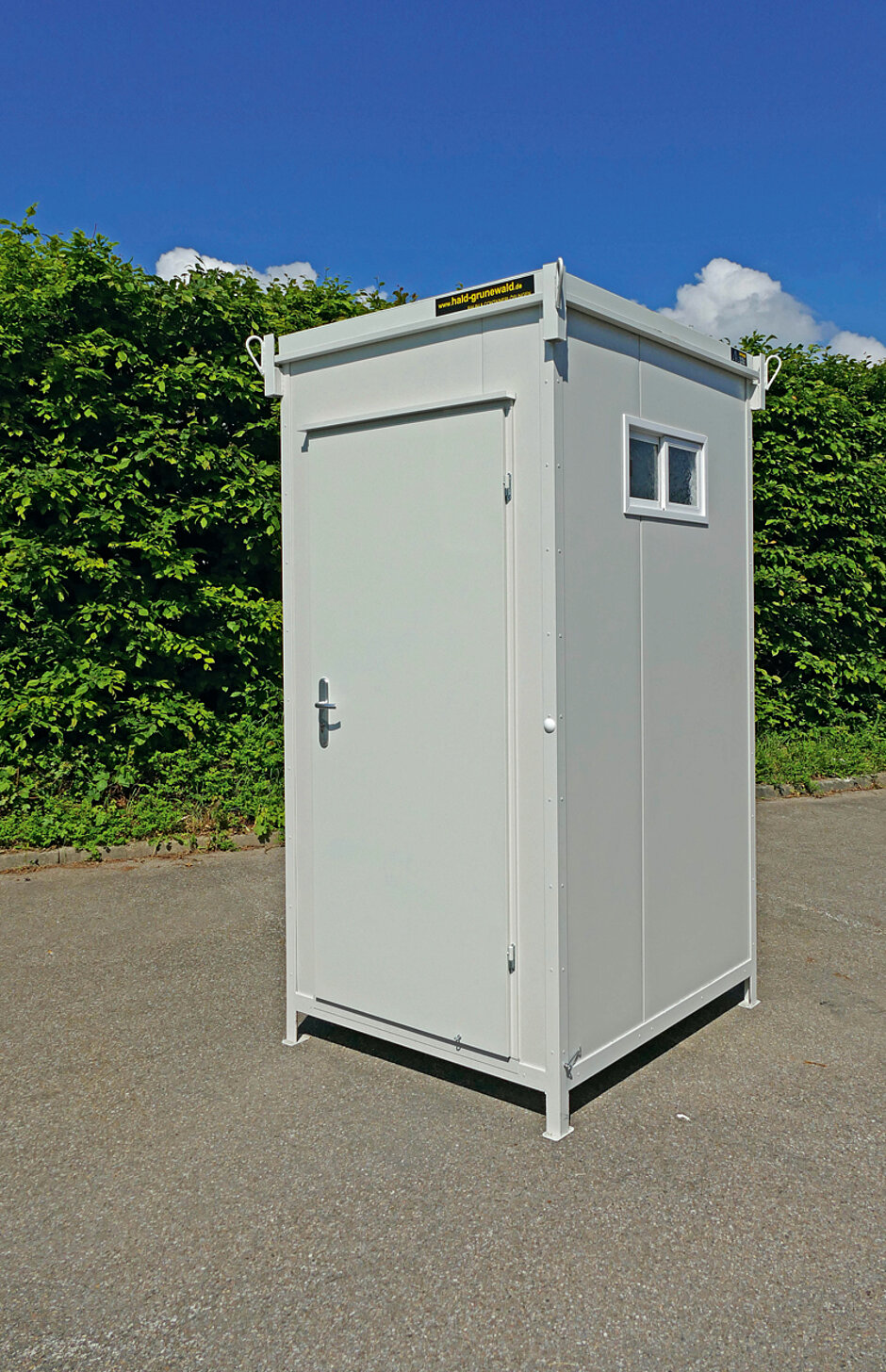 Die neuen Toilettenboxen sind im Innen- sowie Außenbereich einsetzbar und können als dauerhafte oder temporäre Lösung genutzt werden. Die wetterfeste Box wird aufstellfertig montiert und ist nach der Anlieferung sofort nutzbar. Die kleine WC-Anlage ist aus strapazierfähigen Materialien gefertigt, sodass Innenverkleidung und Boden leicht zu reinigen sind.
