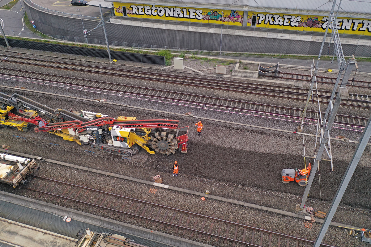 Die Ausführung der Weichenerneuerungsarbeiten findet in der Regel unter normalem Betrieb der Bahnen auf dem Nachbargleis statt. In Aarau erfolgte der Umbau in einem Dreischichtsystem. Alle Arbeitsprozesse greifen ineinander und bauen aufeinander auf. Das ist wichtig, denn die Wiederaufnahme des Bahnverkehrs erfolgt in der Regel unmittelbar nach dem Weicheneinbau und Sperrpausen sind knapp bemessen.