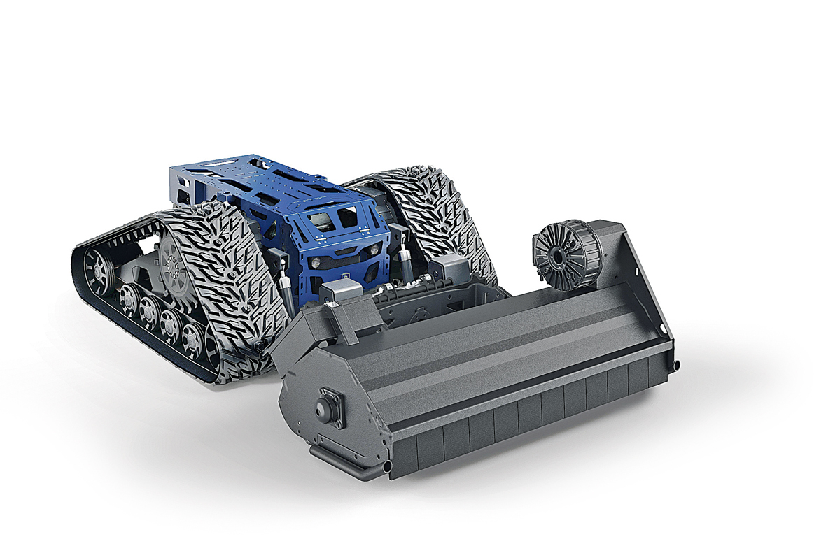 Bis 30 km/h schnell im Gelände, bis zu 100 % Steigung oder bis 500 kg Nutzlast – das agile Hawe-Fahrgestell auf Raupen will dank eines kraftvollen Antriebs und des hauseigenen Lithium-Ionen-Batteriepacks diese Leistungswerte lokal emissionsfrei erfüllen.