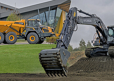 Ergonomisches Design, perfekter Stahlbau und Markenkomponenten (Cummins, ZF-Achsen, Bosch-Rexroth) kennzeichnen die A-Serie der Hyundai-Radlader von 11 bis 36,5 t Einsatzgewicht. Der südkoreanische Konzern legt großen Wert auf Effizienz und Nachhaltigkeit. Deswegen werden die Radlader der »A«-Serie mit einem Vier-/Fünfganggetriebe mit Überbrückungskupplung ausgerüstet, das den Kraftstoffverbrauch laut Hersteller reduziert. Die serienmäßige ECO-Anzeige unterstützt den Fahrer beim wirtschaftlichen Betrieb u.a. durch die Empfehlung der passenden Leistungsstufe. Sie ändert ihre Farbe mit dem Motordrehmoment und der Kraftstoffeffizienz. Außerdem werden Kraftstoffverbrauchswerte wie Durchschnittsverbrauch und Gesamtverbrauch überwacht und am Monitor angezeigt. Das serienmäßige ECO-Fahrpedal unterscheidet zwischen sparsamem Betrieb und Leistungsbetrieb – im Sparbetrieb ist der Kraftstoffverbrauch deutlich niedriger. Eine Geschwindigkeitsbegrenzung ist für Fahrer der »HL«-Serie zwischen 20 und 40 km/h so einstellbar, wie es für den jeweiligen Einsatz optimal ist.
