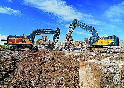 Die modernste Nassaufbereitungsanlage (R-Gestein Niederrheinanlage), markiert die Vorreiterrolle des Unternehmens, das seit rund 15 Jahren Großkunde beim Hyundai-Vertragshändler Hyundai Baumaschinen Nord mit Stammsitz in Bad Bentheim ist. Rund zwölf Radlader und zwölf Mobil- und Kettenbagger beschicken Anlagen, helfen bei der Produktion von Betonsteinen sowie bei der Rückverladung. Das Resultat sind fremd- und störstoffbefreite feine und grobe Gesteinskörnungen, die aus heterogenen Abfallmaterialien entstammen und als homogene Produkte das Werk verlassen und problemlos eingebaut werden können. Zum Angebot gehören Sande, Splitte und Schotter bis zu 0-32. Der »HL985A« wird vermutlich vier Jahre im Einsatz sein und dabei rund 8 000 Stunden leisten.
