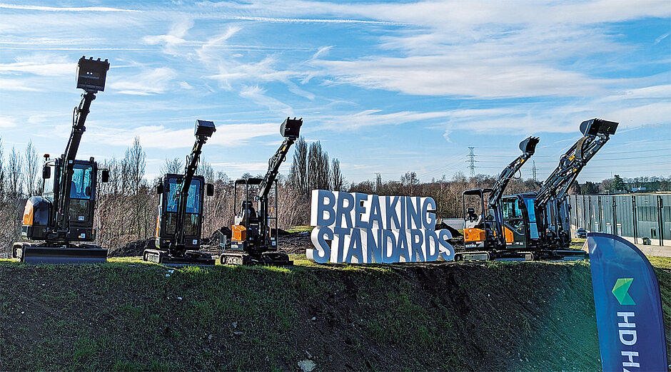 Eines war direkt sichtbar: Der Hersteller hat die Komponenten seiner Hydraulikanlagen neu ausgerichtet, um etwa das Hauptregelventil leichter für Wartungsarbeiten zugänglich zu machen – es befindet sich nun auf der rechten Seite des Baggers. Komplettiert wird das Ganze durch großzügig dimensionierte Klappen am Heck und seitlich am Motorraum. Auf diese Weise, so HD Hyundai, möchte man einen vereinfachten Zugang zu allen Teilen ermöglichen, die eine regelmäßige Wartung erfordern. Die etwas schwereren Modelle bieten zudem eine kippbare Kabine. Sämtliche Filter und Einfüllstutzen sind vom Boden aus erreichbar und am unteren Fahrwerk befindet sich eine Anschlussstelle für die Schläuche des Stützschildzylinders, die den Austausch erleichtert. Und übrigens: Die Mini- und Midibagger der Serie HX-A sind wahlweise mit dem Fernmanagementsystem Hi Mate realisierbar. Mithilfe von GPS-Satellitentechnologie können Maschinenbetreiber und Wartungsabteilungen in Echtzeit Telematikdaten abrufen. Eine neue App für das Smartphone liefert Betriebs- und Flottenleitung per Fernzugriff alle erforderlichen Daten für den wirtschaftlicheren und effizienteren Maschineneinsatz. Außerdem bietet Hi Mate die Konfiguration von Alarmen für einen geografischen Bereich, die ausgelöst werden, wenn eine Maschine ohne Genehmigung ein festgelegtes Areal verlässt.d