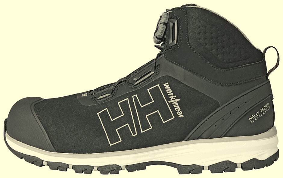 Der »Chelsea Evolution Boa Wide Mid« erhielt mit dem »Boa Fit«-System ein Upgrade, das einen optimalen Sitz und beste Funktionalität verspricht. Das schnürsenkellose System erlaubt Arbeitern, die Schuhe unkompliziert an- sowie auszuziehen und gibt ihnen die Möglichkeit, die Passform binnen weniger Sekunden anzupassen. Dank »Boa Fit« sieht der Hersteller den »Chelsea Evolution Boa Wide Mid« als eine ideale Wahl für Arbeiter, die den ganzen Tag auf den Beinen sind. Die wasserfeste und atmungsaktive »Helly Tech Performance«-Membran, eine Schuhkappe aus leichtgewichtigem Material, sowie eine nicht durchdringbare Zwischensohle runden das Schuh-Design ab.