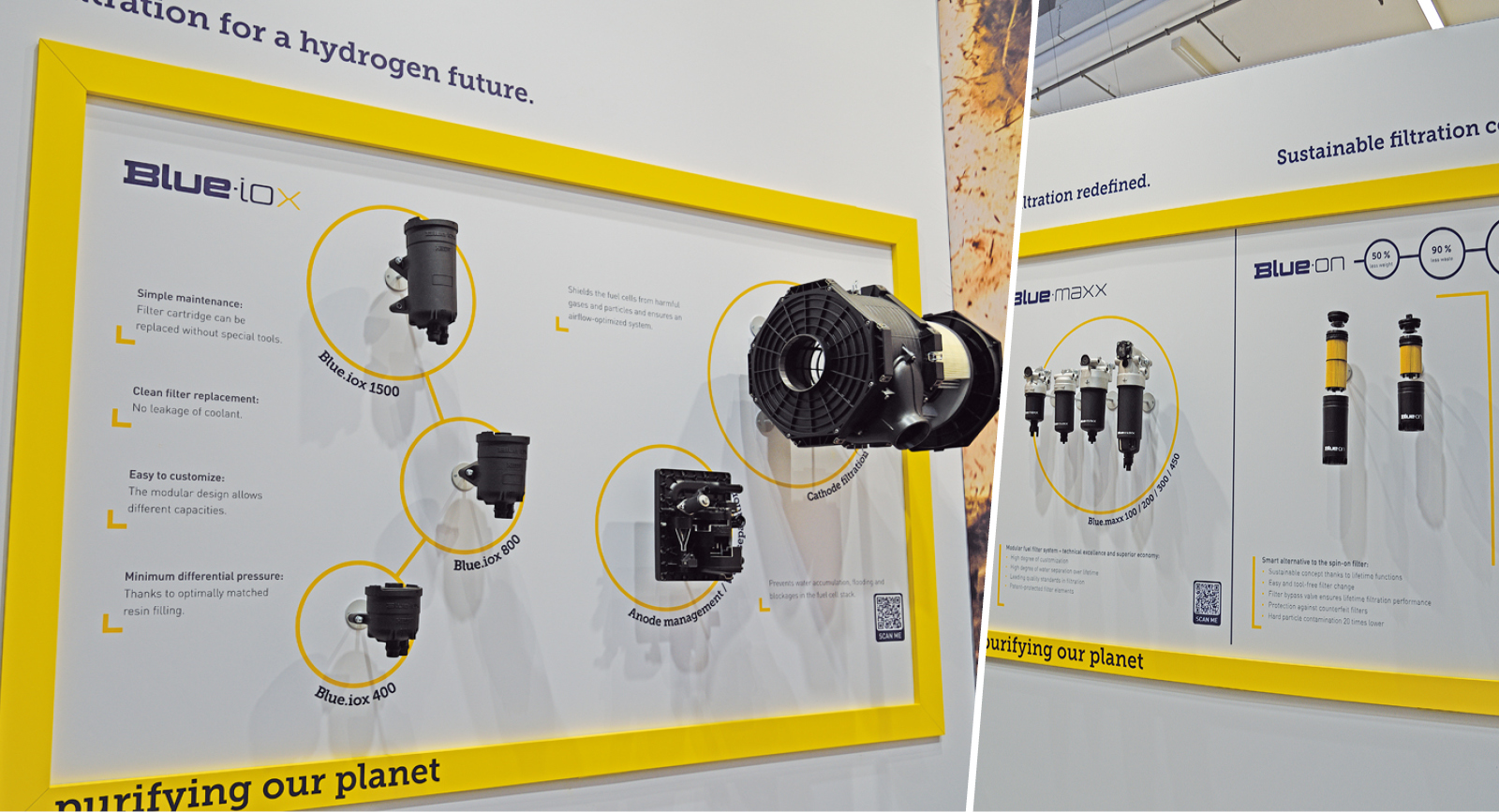 Im Bereich der Ölfiltration bietet Hengst sein nachhaltiges Filtrationskonzept Blue.on auch für Nutzfahrzeuge an. Dabei handelt es sich um eine Alternative zum Spin-on-Filter, die einen werkzeuglosen Wechsel mit 25 % weniger Gewicht und 90 % weniger Abfall ermöglichen soll. Spin-on-Filter sind vielfach im Einsatz, und bei jedem Filterwechsel wird hier die gesamte Filtereinheit komplett gewechselt, wenn nur das Filterelement getauscht werden müsste. Das Gehäuse mit den anderen Funktionen wird allerdings mit entsorgt und erzeugt jährlich Millionen Tonnen Abfall und damit eine enorme Umweltbelastung. Ein Recycling findet aufgrund der Vielzahl der verbauten Materialien meist nicht statt. Auch müssen die Spin-ons aufgrund der verbliebenen Restflüssigkeiten als Sondermüll entsorgt werden. Das Filtrationskonzept Blue.on besteht aus einem Deckel aus Kunststoff, einem Filterelement und dem Ventiladapter, wobei nur das Filterelement gewechselt werden muss und die restlichen Komponenten lebensdauerfest am Motor bleiben.