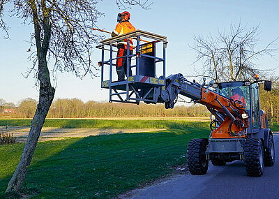 Für die kommunalen Einsätze wurden die Multifunktionsgeräte mit Arbeitskörben entwickelt, um die besonderen Anforderungen in diesen Bereichen optimal zu bedienen. Mithilfe der Paus-Maschinen und der werkseitig abgenommenen Anbaugeräte können vielfältige Arbeiten wie Straßenpflege, Mulch- und Mäharbeiten, aber auch alle Ladetätigkeiten mit Ausschütthöhe von mehr als 4 m vollwertig ausgeführt werden. Neben den Arbeitskörben bietet der Hersteller die Selbstfahrbühne SL 9075 T7 an, die sich aus dem Arbeitskorb bedienen und verfahren lässt, um Arbeiten in Höhen, im »Ein-Mann-Betrieb«, zu erledigen. Dadurch werden aus Ladern multifunktionale Werkzeugträger, die vielfältige Aufgaben wirtschaftlich erledigen.