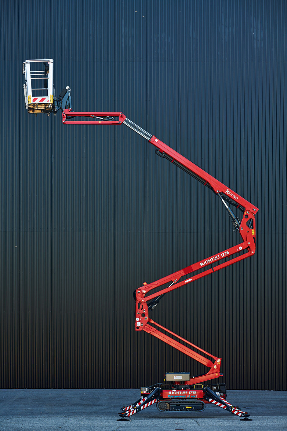 Unter den Maschinen der Performance-Serie steht die Raupenarbeitsbühne Lightlift 17.75 Performance IIIS für Kompaktheit, Leistung und Produktivität. Das Modell erlaubt den Betrieb bis zu einer Arbeitshöhe von 17,06 m und kann u. a. beim Baumschnitt, bei Anstricharbeiten, für die Innen- und Außensanierung, Reinigungsarbeiten, Montage von Solaranlagen sowie für die Installation und Wartung von elektrischen Anlagen eingesetzt werden. Die Lightlift 17.75 verfügt über das Performance-Hydrauliksystem des Herstellers und bietet eine hohe Wendigkeit (Durchfahrtshöhe < 2 m). Mit Abstütz- und Einfahrautomatik weist sie eine Korblast von 230 kg im gesamten Arbeitsbereich auf und erlaubt durch das Pantograph-Gelenk-Hubsystem einfaches und präzises Arbeiten parallel zur Fassade. Dank der Version mit Elektromotor kann die Hinowa Lightlift 17.75 Performance IIIS an jedem Ort geräuschlos eingesetzt werden. Optional besteht die Möglichkeit, die Raupenarbeitsbühne mit einer Lithium-Ionen-Batterie auszustatten. Auch nachgelagerte Wartungs- und Servicearbeiten sind effektiv gestaltet: Dank R.A.H.M können Fehlerdiagnosen und Software-Aktualisierungen von fern erledigt werden, für den Vor-Ort-Service steht dann Dorn Lift zur Verfügung. t