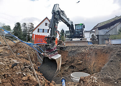 Zusammen mit seinem Vater hat Till Faißt bei Holp in Murrhardt den RotoTop in der betriebseigenen Testarena ausprobiert: »Vor sieben Jahren waren wir vor Ort bei Günter Holp und uns dann sehr schnell sicher, dass wir den RotoTop benötigen.« Gefragt, was sich für ihn seither an der Arbeitsweise mit dem Bagger verändert hat, ist die Antwort eindeutig: »Einfach alles, es verändert sich quasi das komplette Grundprinzip des Baggerns durch die vielen Möglichkeiten. Sobald man wirklich verinnerlicht hat, dass man mit der 360° Drehung und der damit verbundenen Flexibilität einfach alles machen kann, wird man immer schneller und effizienter. Ich schätze, dass wir so 40 bis 50 % der Arbeitszeit einsparen, dadurch steigt unser Ertrag deutlich.« Daher ist sich Faißt sicher, dass bei jeder Neuanschaffung eines Baggers in der Zukunft ein RotoTop dabei sein müsse.s