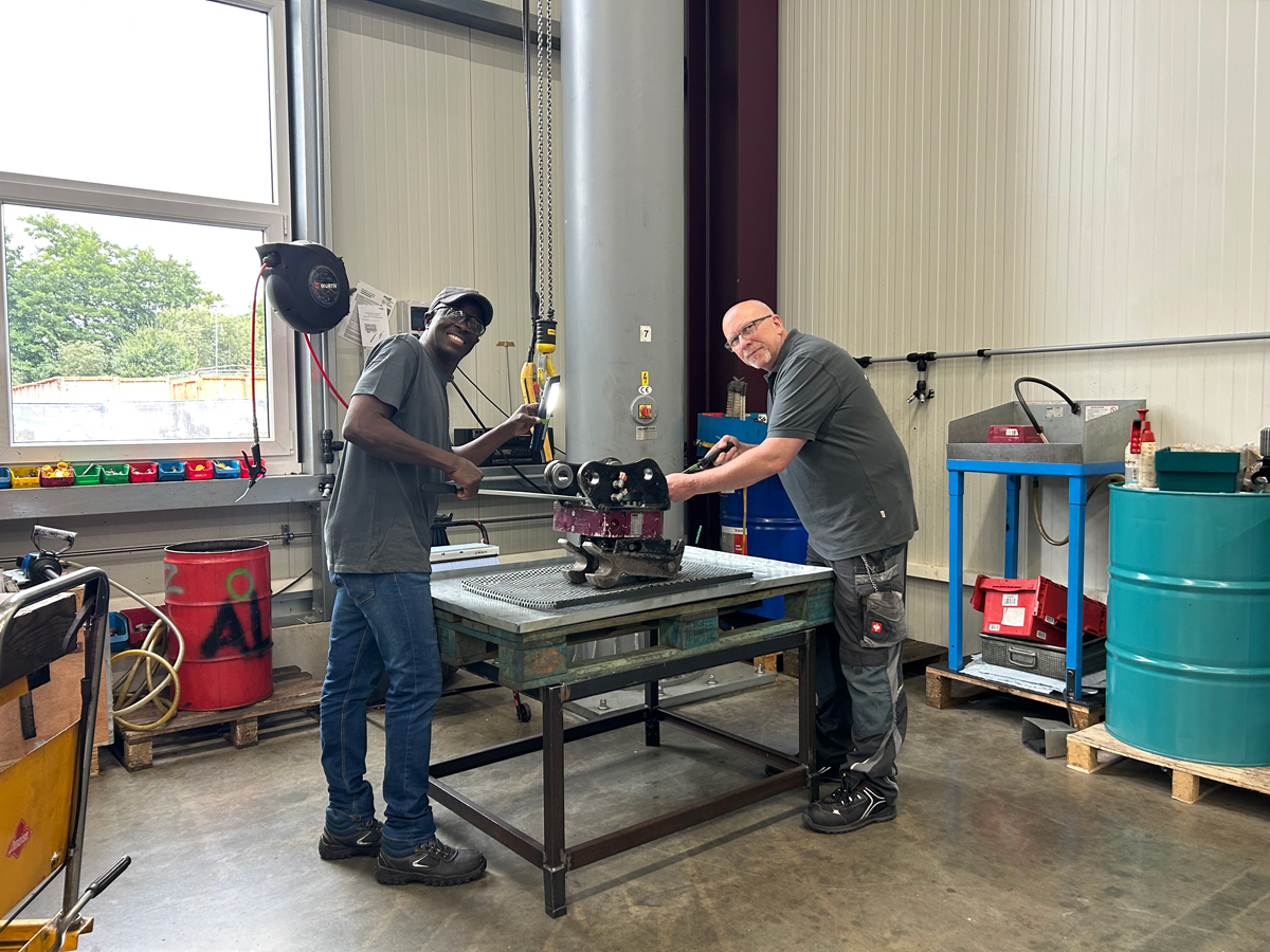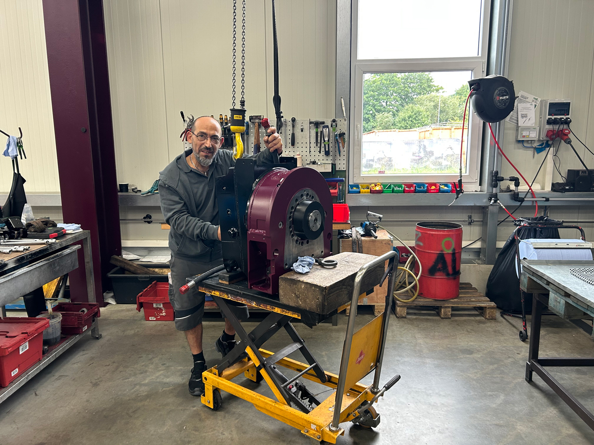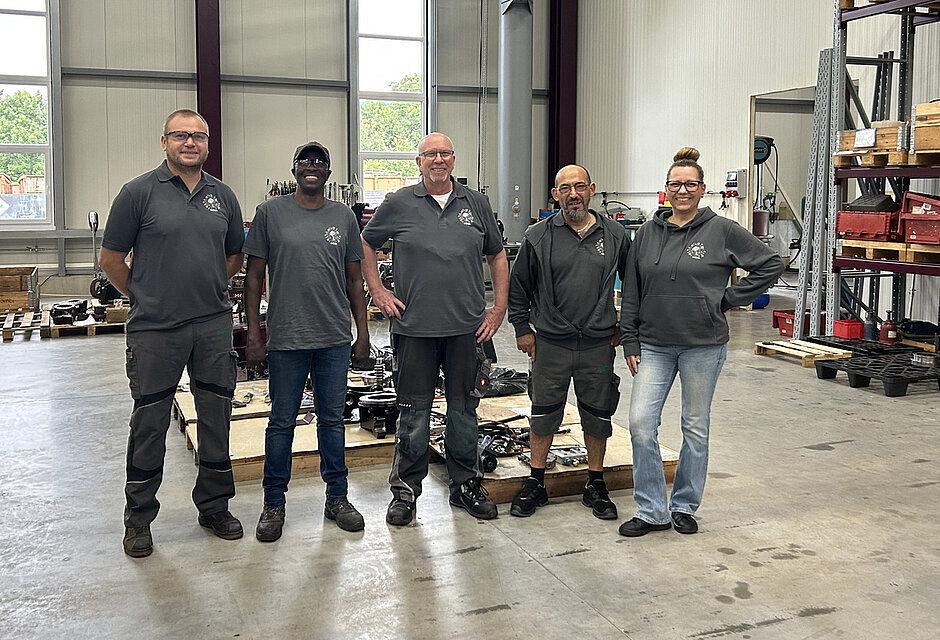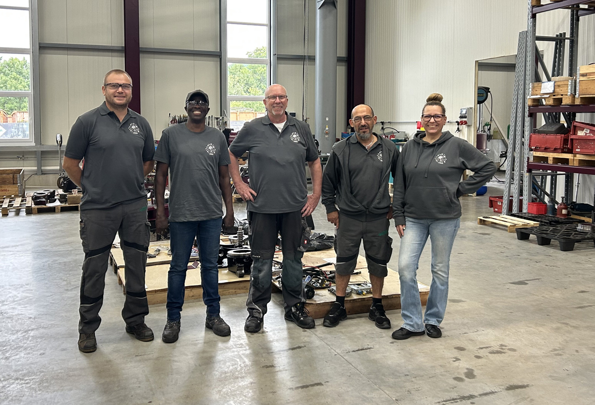Die drei Kollegen Valeriu Cocerba, Salvatore Marino und Alhagie Bojang unterstützen Luithardt mit den Arbeiten wie die Eingangsprüfung der Geräte, das Zerlegen und Reinigen der Teile sowie die Endmontage der überarbeiteten und neu lackierten Teile. Alle fünf Kollegen bilden inzwischen ein gut eingespieltes Team, das sich gegenseitig auf allen Ebenen ergänzt und so die Kunden schnell und schlagkräftig im Servicefall unterstützen kann.