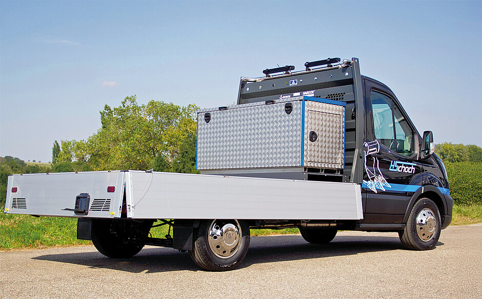 Als ideale Lösung für eine robuste und flexible Aufbewahrungsmöglichkeit nennt HS-Schoch die »HS-Box Pro«: Mit 72 kg und den Maßen 1 840 x 780 x 730 mm bietet sie ausreichend Platz für Werkzeuge, Ausstattungen und Materialien. Hergestellt aus verzinktem Stahlblech mit einer KTL- und Pulverbeschichtung, ist sie zudem besonders widerstandsfähig gegen äußere Einflüsse. Der Deckel besteht aus Alu-Quintett-Warzenblech, was eine hohe Belastbarkeit ermöglicht. Als Zusatzausstattungen sind dieselben Optionen wie für die »Light«-Box verfügbar.