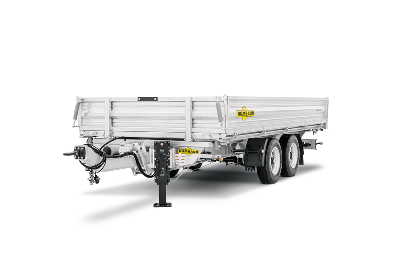 Für den schweren Profieinsatz geeignet will sich der Dreiseitenkipper HTK 105024DL zeigen. Die wartungsfreie Parabelfederung des Anhängers in Durchladeausführung dient dem optimalen Lastausgleich. Ein sicheres Mitlaufverhalten stellen Druckluftbremse, automatische, lastabhängige Bremse und ABS-Bremssystem mit Spindelfeststellbremse sicher. Dank der seitlich und hinten abklappbaren Bordwände, die zudem abnehmbar und pendelnd sind, kann der HTK 105024DL auch mit dem Stapler be- und entladen werden.