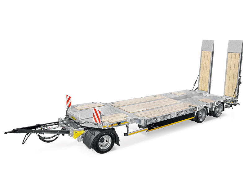 Der 3-Achs-Drehschemel-Tieflader HTD 308525K ist mit einem Parabelfederaggregat inklusive statischem Achsausgleich an der Hinterachse ausgestattet. Das mechanisch gefederte Fahrwerk soll sich nicht nur im Onroad-Einsatz auszeichnen. Gerade durch seine Standfestigkeit und robuste Bauweise will er auch Offroad überzeugen. Damit gilt der Tieflader laut Hersteller als ein idealer Partner für Bau- und Lohnunternehmer mit Lkw und landwirtschaftlichen Zugmaschinen.