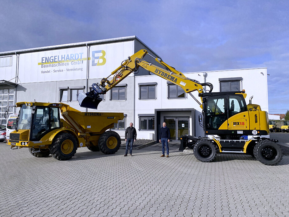Seit dem 01.10.2020 zählt ENGELHARDT Baumaschinen GmbH zum HYDREMA Vertriebsverbund und bedient als Händler die Kunden in der Region Ansbach - Ellwangen und Schwäbisch Hall. Mit 3 weiteren Monteuren und Vertriebsmitarbeiter Michael Scherzer, sowie weiteren Mitarbeitern im Innendienst mit Barbara Kuck, bietet man in jeglicher Hinsicht einen verlässlichen Service und Dienst am Kunden. „Der Kunde steht für uns im Mittelpunkt. Er soll sich wohl fühlen, wenn er zu uns kommt und Vertrauen in unsere Arbeit haben“, erzählt Inhaber Erich Engelhardt.