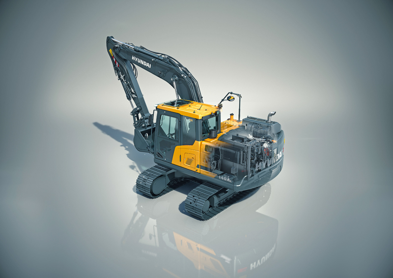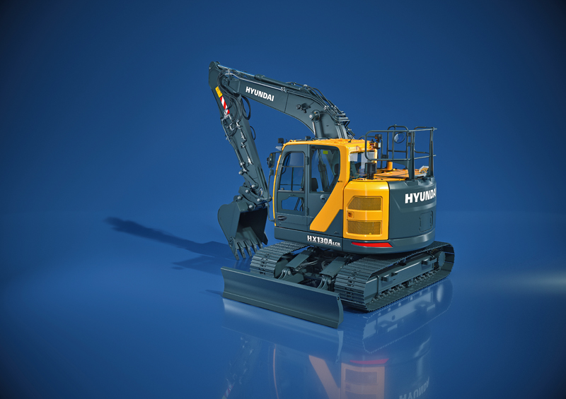 Obwohl die drei neuen Modelle HX130A LCR, HX140A L und HX145A LCR ähnliche Betriebsgewichte aufweisen, bieten sie sehr unterschiedliche Leistungsbereiche, die vielfältigen Einsatzanforderungen gerecht werden sollen. Der Hyundai HX130A LCR mit reduziertem Überhang will eher Mietkunden ansprechen und wird von einer 55 kW (74 PS) starken Version des Cummins F3.8 angetrieben. Der Motor erfüllt die EU-Abgasnorm der Stufe V, ohne dass eine Abgasflüssigkeit wie Adblue benötigt wird. Wird CK-4 E/G-Motoröl verwendet, bietet dieser Motor Wartungsintervalle von bis zu 1 000 h – doppelt so lange wie die Vorgängermaschine. Der HX130A LCR soll zudem von Hyundais vernetzter Motordiagnose ECD zur Ferndiagnose profitieren.