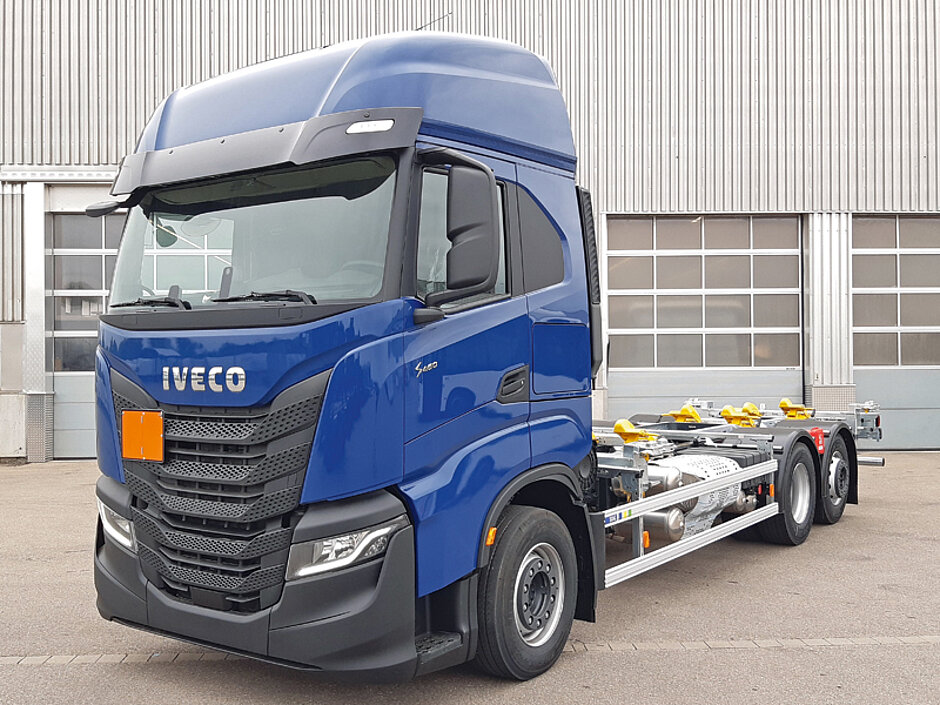 Die von Iveco angebotene »Variante 1« ist ein Multiwechsler mit den Abstellhöhen 1 120 mm, 1 220 mm sowie 1 320 mm und verfügt über ein flexibles Aufnahmesystem von Wechselbehältern der Maße C715, C745, C763 und C782. Zur weiteren Ausstattung zählen vier Arbeitsscheinwerfer, eine Gefahrgutbeschilderung, zwei Feuerlöschkästen sowie eine pneumatisch zu betätigende Tiefkupplung.