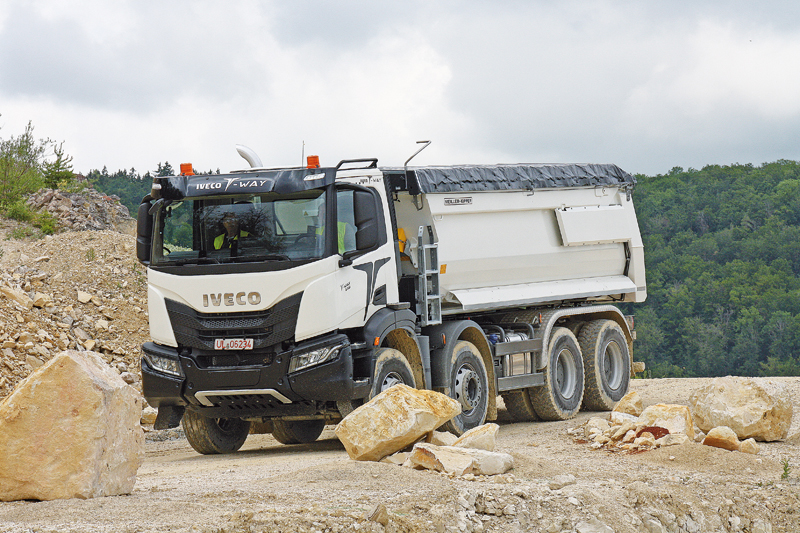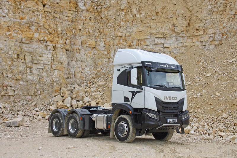 Zahlreiche neue Funktionen, ein geringeres Leergewicht, neue Telematikfunktionen und digitale Services sollen den T-Way auf weitaus mehr Effizienz und Leistungsfähigkeit trimmen. Vorgestellt hat Iveco zum Beispiel den hydrostatischen Antrieb Hi-Traction für 6x4-Fahrgestelle und -Sattelzugmaschinen und damit eine kraftstoffsparende Lösung für Einsätze, die einen gelegentlichen Allradantrieb (AWD) erfordern: Er arbeitet bei Geschwindigkeiten bis 25 km/h und wird automatisch aktiviert, um bei Bedarf eine zusätzliche hydraulische Vorderradtraktion bereitzustellen. Der Antrieb verspricht deutliche Vorteile in Bezug auf Kraftstoffverbrauch und Nutzlast im Vergleich zu einer permanenten AWD-Lösung. »Durch die Neukonstruktion des Tandemträgers an den Hinterachsen konnten wir außerdem das Eigengewicht des T-Way gegenüber dem Trakker um 325 kg reduzieren«, fügte Harald Moll an.