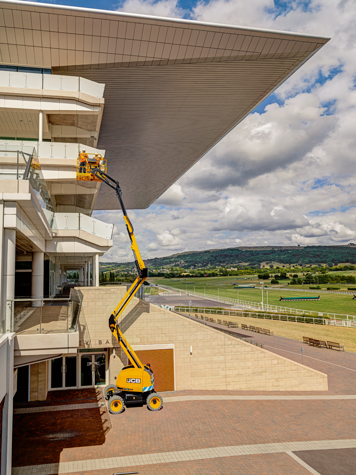Die Gelenk-Teleskop-Arbeitsbühne hat drei Einstiegspunkte für einen einfachen Zugang. Es gibt vier Stellen, an denen das Gurt-Geschirr eingehängt werden kann, sodass der Bediener vollen Zugang zum Korb hat. Die Länge der Plattform beträgt 0,84 m und die Breite 1,84 m. Eine Abschaltvorrichtung, die bei ihrer Aktivierung die Funktionen des Auslegers automatisch unterbricht, schützt den Bediener und verhindert Quetschungen. Die Ausleger sind zudem mit einer Fahrtrichtungsanzeige ausgestattet. Damit soll sichergestellt werden, dass dem Fahrer deutlich ersichtlich ist, ob der Ausleger über die Seite des Fahrgestells geschwenkt ist, bevor er die Maschine mit ausgefahrenem Ausleger bewegt. Ein Neigungssensor verhindert, dass der Ausleger bei mehr als 5° Neigung auf unebenem Boden weiter ausgefahren werden kann.