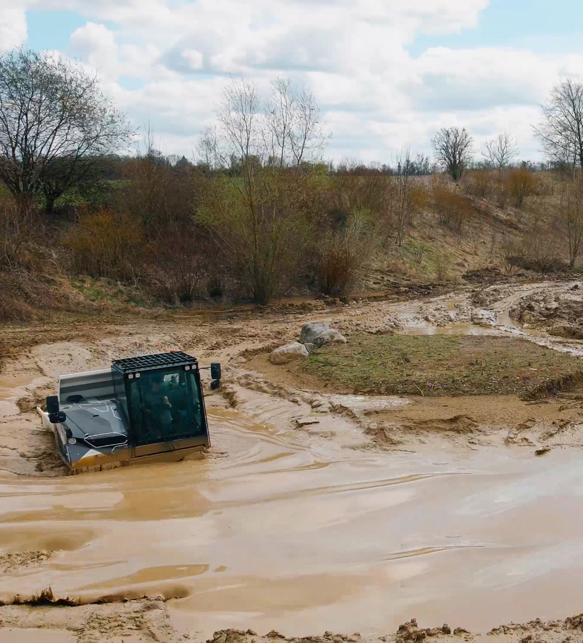 Aufgrund der großen Aufstandsfläche der Ketten haben die Fahrzeuge einen minimalen Bodendruck von weniger als 0,2 kg/cm², der um ein Vielfaches geringer ist als bei konventionellen Radfahrzeugen. Das ermöglicht PowerBully müheloses Fortkommen auf weichen, schlammigen und wenig tragfähigen Böden, wodurch die Einsatzsicherheit unabhängig von den Witterungsbedingungen gewährleistet ist. Mit einer Wattiefe von über 1,35 m ist PowerBully auch in ufernahen oder überschwemmten Gebieten zuverlässig im Einsatz. Die Steigleistung von 60 % (31°) bergauf und bergab sowie 40 % (22°) seitwärts ermöglicht sicheres Arbeiten an steilen Hängen.