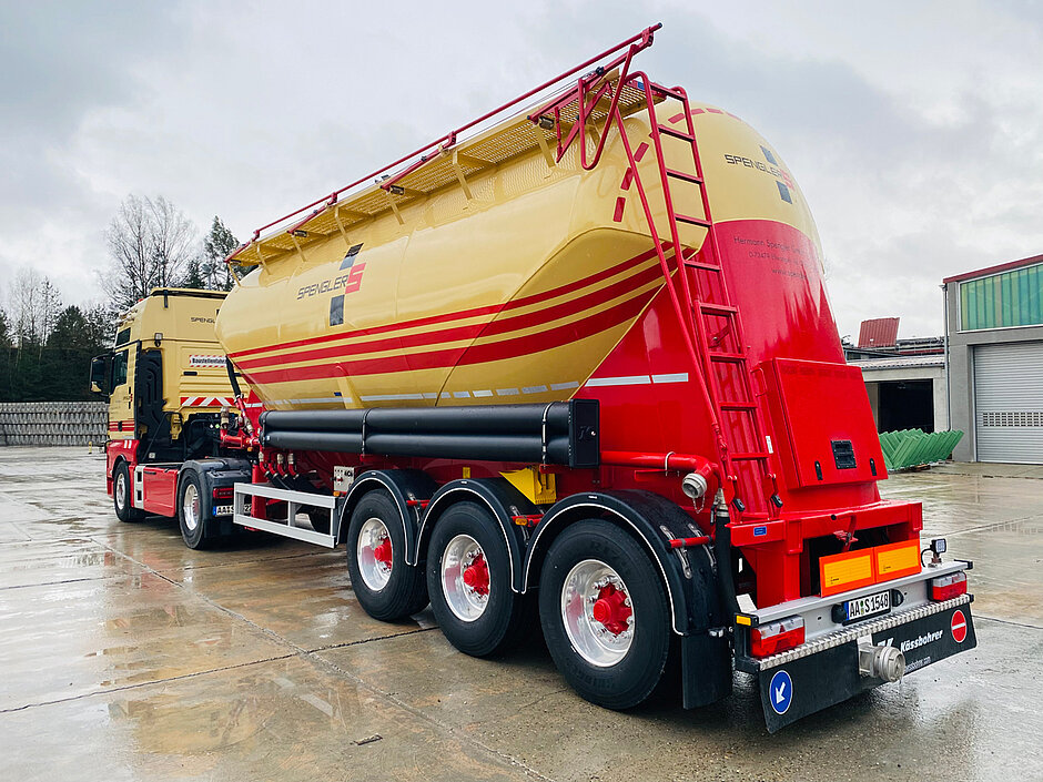 Firmeninhaber Florian Spengler hatte das Fahrzeug am Kässbohrer-Standort Ulm von Michael Conrad, bei Kässbohrer Vertriebsleiter für das Segment Tank & Silo, übernommen. »Das liegende Silo K.SSL 35 von Kässbohrer ist mit seiner Qualität, der effizienten Entleerung, der sehr guten Manövrierfähigkeit, der hohen Stabilität und der Tragfähigkeit die richtige Wahl zur eigenen Belieferung unseres Betonwerks mit Zement«, betonte Spengler. Das kompetente Kässbohrer-Servicenetz in Deutschland und Europa, die schnelle Verfügbarkeit von Ersatzteilen und die Qualität des Kundendienstes seien für das Haus Spengler ebenfalls wichtig. »Neben der Garantie und Sicherheit bietet Kässbohrer auch günstige Finanzierungslösungen an«, so Spengler weiter.