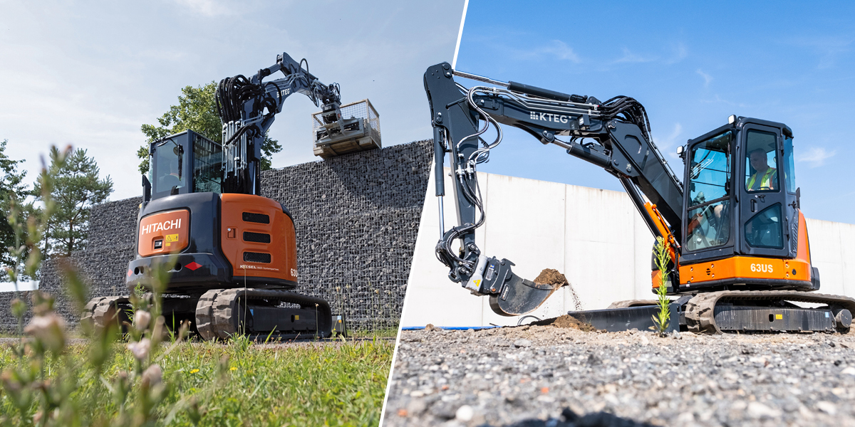 »Auf die Frage, wie Prozesse auf der Baustelle schneller laufen können, haben wir bei Kiesel mit der KTEG P-Line eine Antwort gefunden. Und nicht nur das: Mit dem Einsatz der KTEG P-Line können unsere Kunden auch deutlich mehr Profit erzielen«, so Bastian Mesmer im Gespräch. Das modulare System, bestehend aus Maschine, digitalen Assistenzsystemen, vollhydraulischem Rotationsschnellwechsler und bauteiloptimierten Anbaugeräten, bewältigt die Aufgaben, für die sonst Zusatzgeräte oder weiteres Personal nötig wären. Das heißt, Anbaugeräte können in Sekundenschnelle gewechselt werden und ein Bagger ist nicht mehr nur ein Bagger, sondern auch ein Radlader, ein Hebegerät oder ein Geländestapler. »Wir werden den KTEG 63US-6 der Baubranche auf der GaLaBau im September vorstellen.« Bastian Mesmer ist stolz auf die neueste KTEG-Entwicklung, die zeigen soll, wie die einzelnen Konzerngruppen zusammenwirken und sich dadurch klar als Systempartner erweisen.d