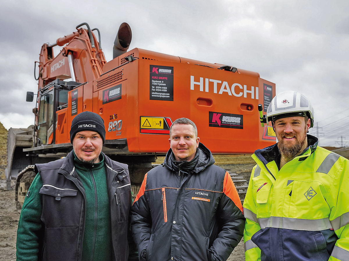 Auch Steffen Hanko, bei Kurz Baumaschinen unter anderem auch im projektübergreifenden technischen Support zuständig, schätzt die Zusammenarbeit: »Gerade bei Muldenkippern über 35 t bietet niemand eine so hohe Verfügbarkeit wie Kiesel.« Und auch der Service stimmt: »Bei Neumaschinen oder neuen Modellen im Fuhrpark greifen wir immer auf den Kiesel-Service zurück und profitieren von schnellen Reaktionen, insbesondere in der Bereitstellung von Teilen. Zudem lassen wir unsere eigenen Wartungsteams auch durch Kiesel-Techniker an den Maschinen schulen, das macht uns noch flexibler, gerade wenn es um wichtige Schlüsselgeräte wie unsere Großbagger geht.« Dabei beschränkt sich die Zusammenarbeit beileibe nicht nur auf Deutschland oder das angrenzende Ausland: Auch bei der technischen Ausrüstung eines mehrere Steinbrüche betreibenden Baustoffproduzenten im Senegal, wo sich die Kurz-Gruppe gemeinsam mit lokalen Partnern engagiert, kommen mehrere Hitachi-Großbagger (ZX490/690/890) sowie diverse Bell-Knicklenker zum Einstz. s