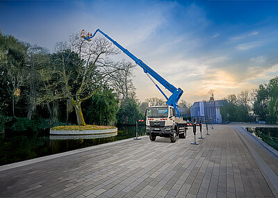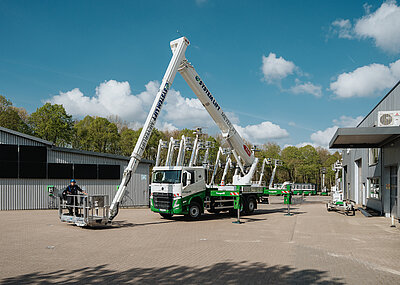 Mit dem Steiger T 300 XS hat Ruthmann seine neueste Lkw-Arbeitsbühne auf die Räder gestellt. Das erste ausgelieferte Modell der Baureihe rollte jetzt zur Zulassungspremiere in die Kiloutou-Niederlassung Erfurt. Mit der schnellen Aufnahme der Neuheit in den Fuhrpark will Kiloutou seinen Anspruch unterstreichen, ständig eine der innovativsten Mietflotten bereitzuhalten. Kiloutou Deutschland, Tochter des drittgrößten europäischen Gerätevermieters, investiert laufend in den Ausbau ihres hochleistungsfähigen Fahrzeugangebots. So kamen erst kürzlich acht Meusburger-Sattelauflieger mit abklappbarem Heck hinzu, denen im Frühjahr acht weitere Auflieger sowie sechs Plateaufahrzeuge plus passender neuer DAF-Sattelzugmaschinen folgen sollen. Mit dem jetzt übernommenen Steiger T 300 XS sortiert sich eine moderne Arbeitsbühnenlösung in den Flottenbestand ein. Die Neuheit will mit 30 m Arbeitshöhe und bis zu 23 m Reichweite bei nur 7,59 m Fahrzeuglänge überzeugen. Dank eines Radstands von nur 3,6 m gilt die Neuheit auch als außerordentlich wendig, die Arbeitskorblast beträgt 350 kg. t