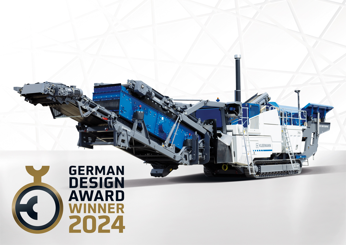 Die Kleemann Anlage überzeugte die Jury des German Design Awards durch die Kombination aus umweltfreundlichem Antriebskonzept, hoher Funktionalität und Benutzerfreundlichkeit im Zusammenspiel mit einem eindrucksvollen Design. In der Begründung heißt es: „Der moderne Prallbrecher Mobirex MR 130i Pro ermöglicht einen voll elektrischen Betrieb. Dabei spiegelt das Design den Anspruch auf Funktionalität, Leistung und Ergonomie eindrucksvoll wider.“ Der renommierte German Design Award wird jedes Jahr vom Rat für Formgebung vergeben. 1953 auf Initiative des Deutschen Bundestages als Stiftung gegründet, unterstützt er die Wirtschaft dabei, konsequent Markenmehrwert durch Design zu erzielen.