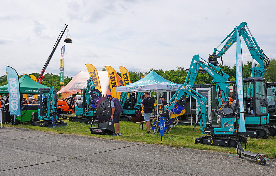 Insgesamt sechs Kettenbagger von knapp 1,1 bis 10 t zeigte der Kobelco-Partner für Thüringen und Sachsen in Eisenach, jeweils ausgerüstet mit effizienten Werkzeugen für einschlägige Aufgaben im Erdbau und in der Grünpflege. „Es war wohl für alle etwas dabei“, so Ronny Sänger mit Blick auf das über alle Messetage durchgehend hohe Besucherinteresse aus den Bereichen GaLaBau, Kommunen oder branchenübergreifenden Dienstleistern.