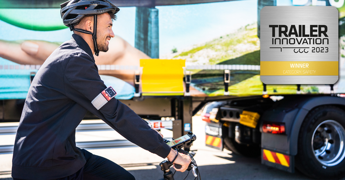 Philipp Bönders, Vorsitzender der 15-köpfigen Trailer-Innovation-Jury über KRS: „Abbiegeunfälle mit LKW sind auch heute leider keine Seltenheit bei der Belieferung in Innenstädten. Noch immer gibt es jedes Jahr zahlreiche Zwischenfälle, bei denen Fahrradfahrer oder Fußgänger durch nach rechts abbiegenden Fahrzeugen verletzt oder gar getötet werden. Um solche Unfälle künftig zu vermeiden, hat Kögel nun das KRS- System (Kögel Road Safety) entwickelt. Damit wird der Sattelauflieger zum Lebensretter, da er ein spezielles Signal beim Blinken aussendet, das schwächere Verkehrsteilnehmer vor dem bevorstehenden Abbiegevorgang auf ihrem Smartphone warnt. Eine solche Technologie ist vorbildlich und wurde daher von der Jury der Trailer Innovation 2023 mit dem 1. Platz in der Kategorie Safety ausgezeichnet.“