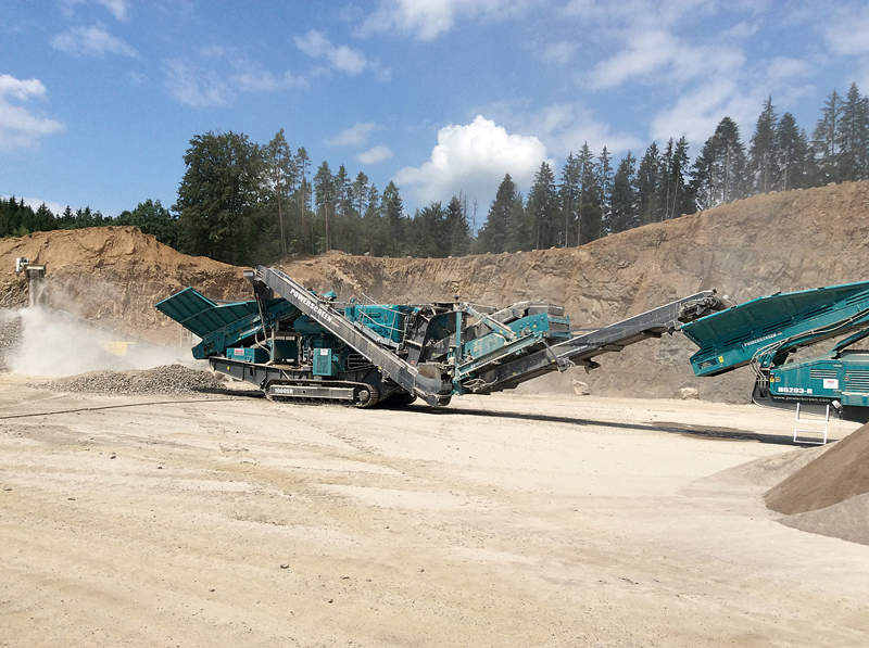 Haimerl setzt bei seinen Maschinen auf höchste Zuverlässigkeit, Qualität und Nachhaltigkeit. Kölsch Baumaschinen, Spezialist für die Aufbereitung und das Recycling von Baustoffen im süddeutschen Raum, lieferte für das Haimerl-Werk Mackenschleif das Förderband TCL 431 von Telestack, zudem den raupenmobilen Kegelbrecher Powerscreen Maxtrak 1000-SR sowie die Powerscreen H6203, eine besonders trennscharfe, raupenmobile Horizontalsiebanlage. Kölsch selbst ist im süddeutschen Raum Exklusivhändler der Marken Terex Powerscreen, Terex Washing Systems, Rubble Master, Portafill, Telestack, Franzoi, MATEC und Cityequip.