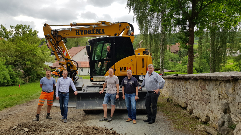 Mit fast 40 km/h kann also Hymo Trebes seinen Citybagger zur Baustelle bewegen, allerdings hat der Bagger von HYDREMA noch weitere Vorteile, die für die Stadt Kronach relevant gewesen sein dürften, denn der MX wird speziell für den Einsatz von Tiltrotatoren gebaut. „Während andere Bagger - Hersteller zum Betreiben eines Tiltrotators über den Hersteller des Tiltrotators eine zusätzliche Steuerung einbauen lassen müssen, kann der MX mit der werkseitig integrierten Steuerung jeden Tiltrotator ohne zusätzliche Steuerung betreiben. Da man mit dem in diesem Bereich führenden Hersteller ENGCON seit Jahren eine sehr enge und gute Zusammenarbeit pflegt, konnte diese Ausrüstung werksseitig zu einem guten Preis gleich mitgeliefert werden“ erzählt der HYDREMA – Fachmann.
