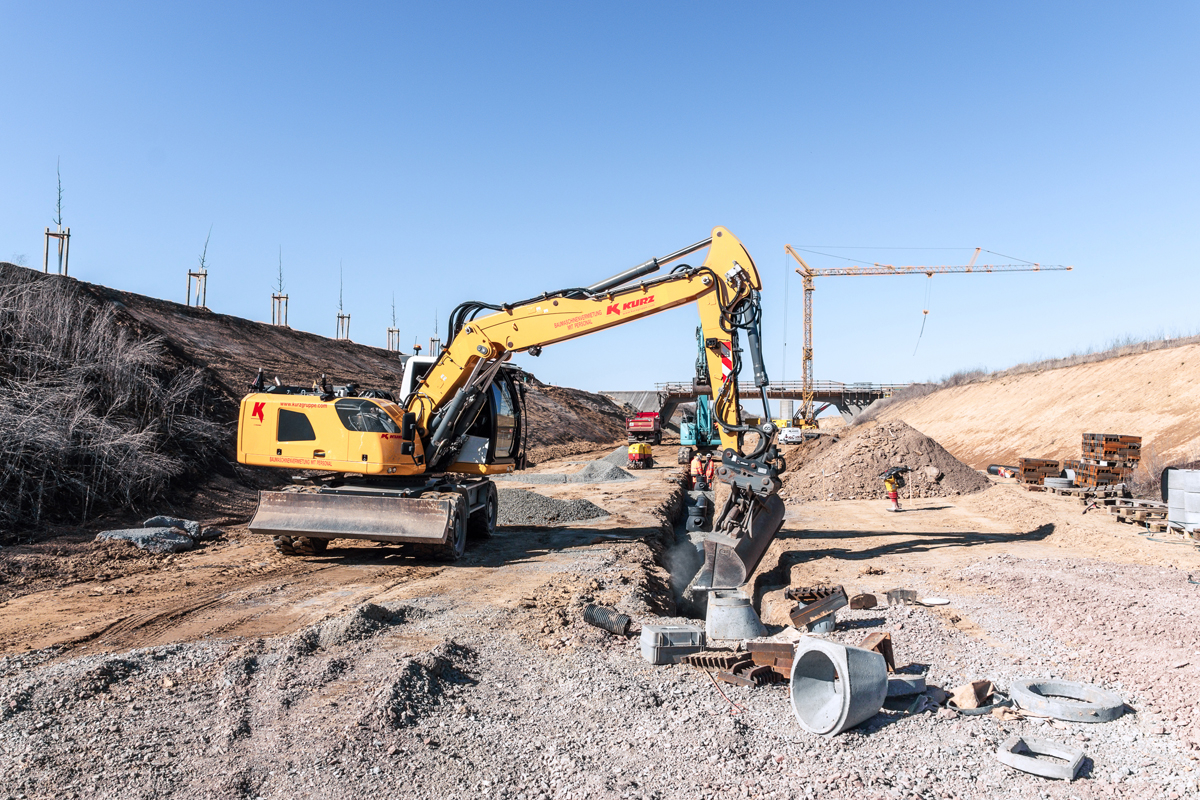 Beim Neubau der Bundesstraße B247 zwischen Mühlhausen und Bad Langensalza in Thüringen setzt der Bauträger Vinci Construction GeoInfrastructure auf die flexible Unterstützung durch die Firma Kurz. Das Großprojekt umfasst eine Strecke von insgesamt 24,4 km, von denen 22,2 km vollständig neu gebaut werden – mit zwei- bis vierstreifigem Ausbau. Teil des Vorhabens sind 31 Brückenbauwerke, darunter zwei Fluss-Überquerungen und fünf Bahnüberführungen, sowie acht neue Anschlussstellen, zehn Regenrückhaltebecken und ein rund 59 km langes Entwässerungssystem. Um die hohe technische und logistische Komplexität des Projekts zu meistern, vertraut Vinci Construction GeoInfrastructure auf das umfassende Mietpark-Konzept der Firma Kurz. Seit November 2024 werden Baumaschinen von 16 bis 40 t inklusive geschultem Bedienpersonal angemietet – darunter Raupen, Bagger sowie Kurzheck- und Mobilbagger. Anfangs war nur eine Maschine im Einsatz, mittlerweile arbeiten je nach Bauabschnitt bis zu neun Maschinen gleichzeitig auf der Baustelle. Die Kooperation wird auch in den kommenden Monaten fortgesetzt.
