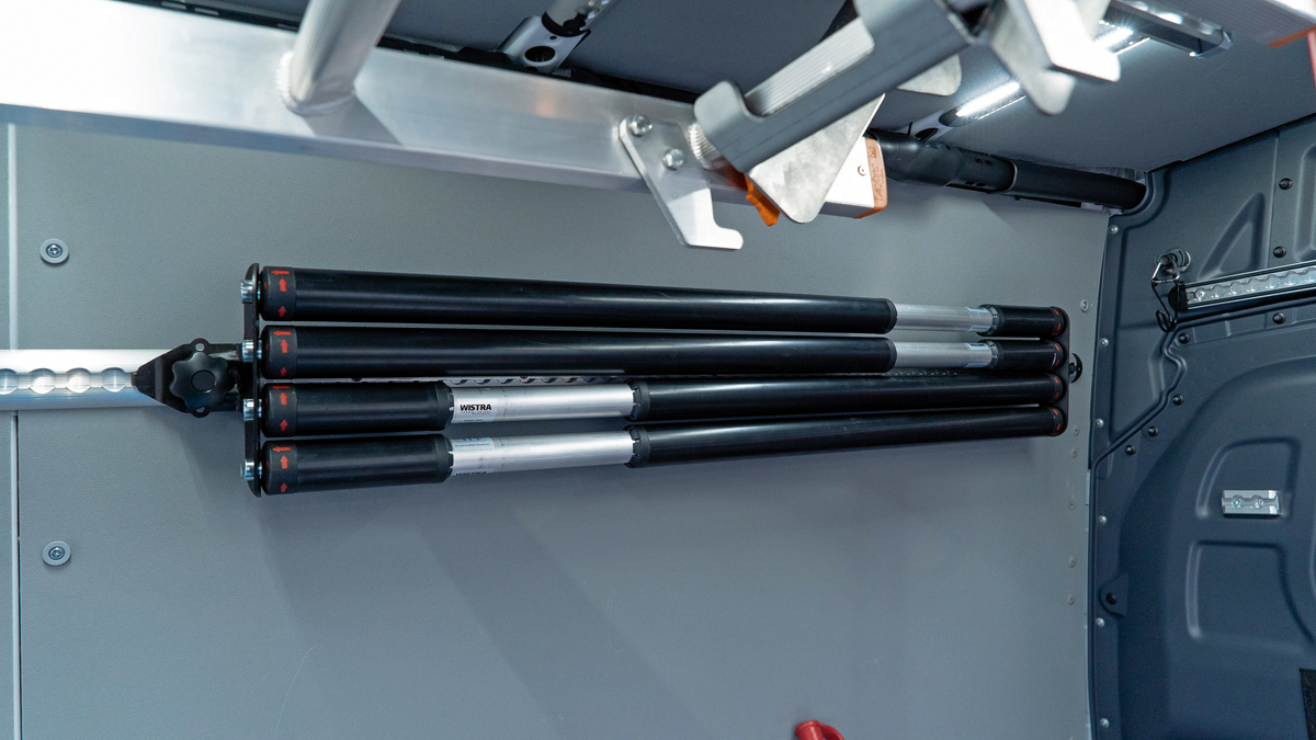 Der »Twist-Beam« besteht vorwiegend aus hochfestem Aluminium, was für einen kräfteschonenden Einsatz sorgt. Gleiches gilt für das stufen- und federlose sowie exakte Einstellen des Sperrbalkens auf die gewünschte Länge: Dadurch wird beim Einsetzen kein Druck auf die Außenwände übertragen. Von diesem Prinzip profitiert zudem der neue »Quattro«-Halter: Die Sperrstangen lassen sich ohne Spannung auf die gewünschte Länge bringen und in die Halterung einsetzen.
