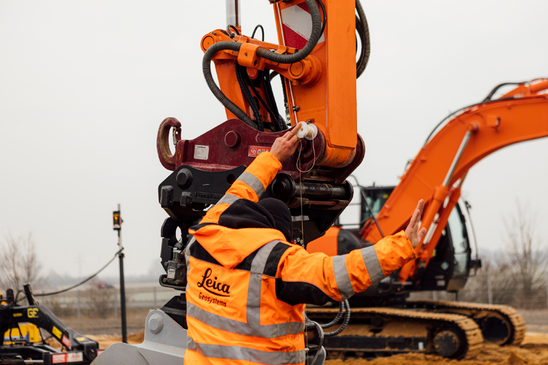 Leica ist bei Bedarf mit eigenen Fachleuten präsent, die die Testwilligen in die Technik einweisen und Hilfestellung leisten. »Wir beschäftigen seit der Eröffnung ein eigenes Team, das sich um die Besucher im Coreum kümmert«, so Segment-Manager Jan Hakert, der selbst einen großen Teil seiner Arbeitszeit vor Ort zubringt. Dort stehe er sowie seine Firmenkollegen für die Fragen wissbegieriger Coreum-Besucher bereit. Schildere ein Kunde ein konkretes Problem aus seinem Arbeitsalltag, könnten die Leica-Experten sowohl die Lösung benennen, als auch direkt vorführen und gegebenenfalls sogar zum Testen anbieten. Im »Coreum« kann Leica nicht nur auf die eigene Angebotspalette zurückgreifen, auch Bagger und Radlader in sämtlichen praxisrelevanten Größenklassen sind direkt verfügbar.