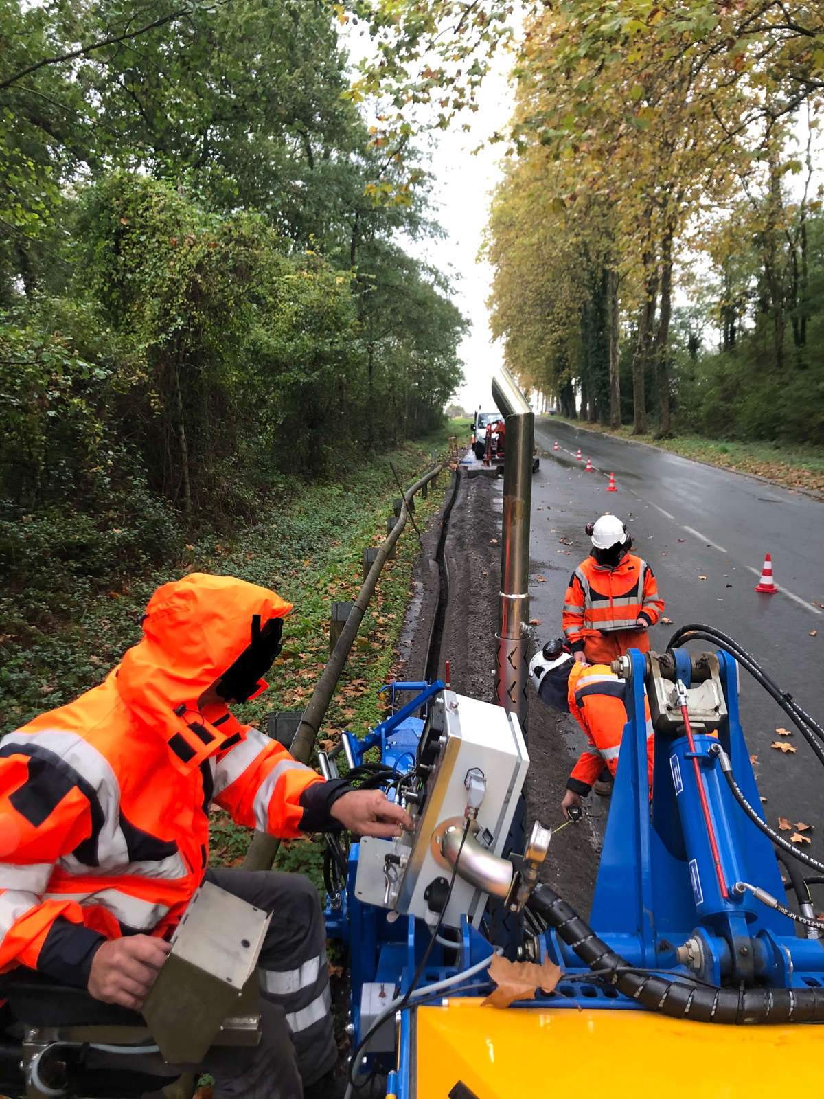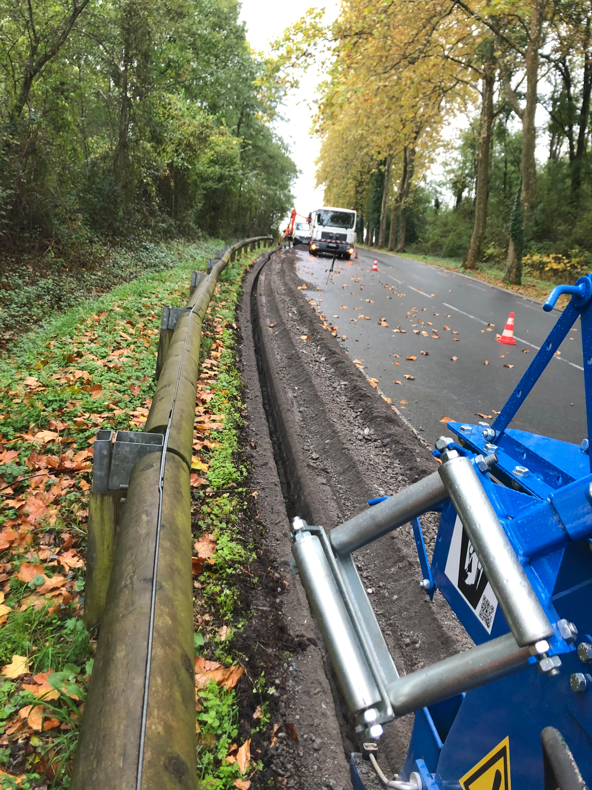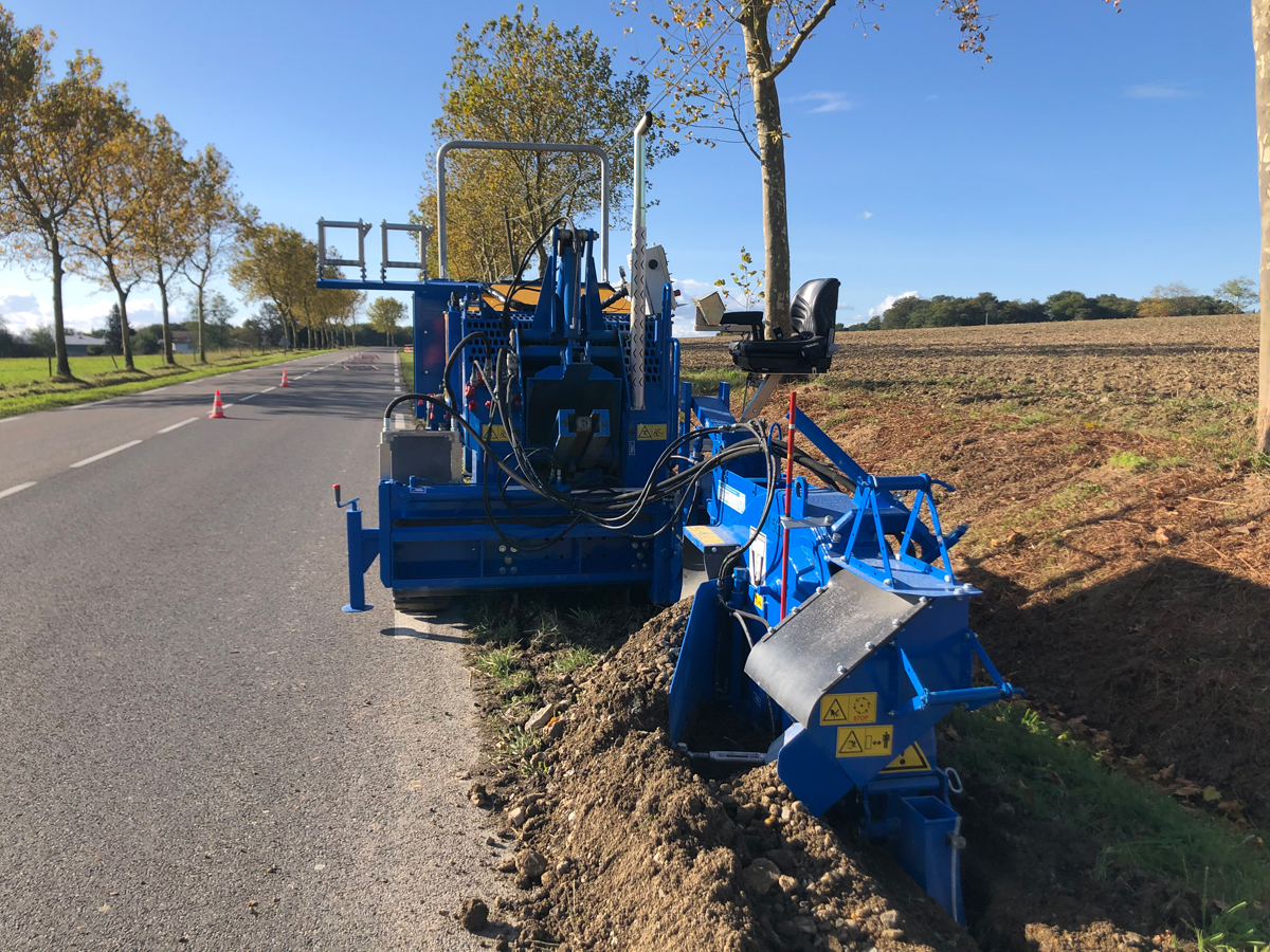 Die von den Lingenern angebotenen Maschinen wie der Glasfaserverlegespezialist GM 500 R (das bauMAGAZIN berichtete in Heft 9/21, Seite 63) werden mit einem Verlegeschacht ausgeliefert, über den Kabel oder Leerrohre direkt hinter dem Fräsbalken in den Graben eingeführt werden. Dies vereinfacht eine Rohrverlegung über die automatische Einlage weiter. Über eine an der Verlegemaschine montierte Kabeltrommel wird das Rohr auch automatisch abgerollt und über den Verlegeschacht eingeführt. Ebenso lässt sich bei den LIBA-Maschinen ein Verfülltrichter hinzufügen, der hinter die Maschine gespannt und befüllt wird. Während die Maschine den Graben fräst und das Kabel verlegt wird damit nach dem Verlegen ebenfalls automatisch der Graben wieder verdichtet.