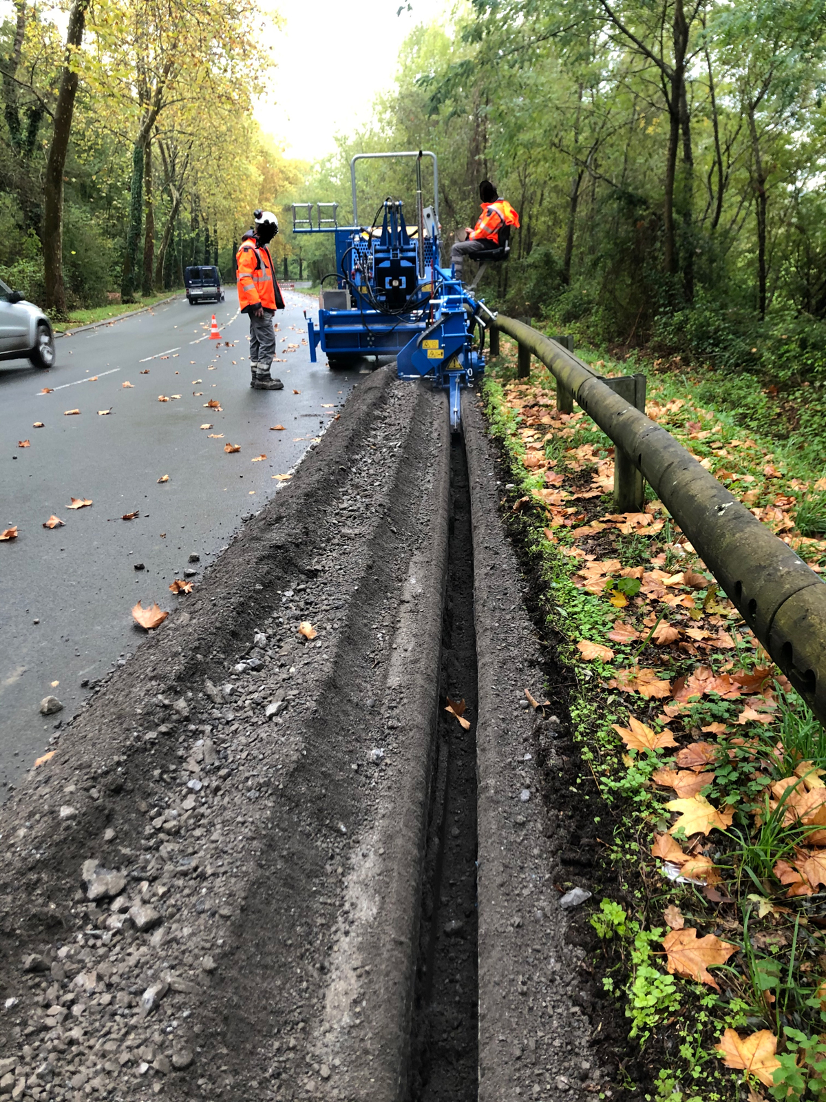 Beim Micro-Trenching werden Gräben gerade so breit und tief gefräst, dass ein zu verlegendes Kabel gut in den Graben eingeführt werden kann. Sowohl der Graben als auch der damit verbundene Aushub werden damit so gering wie möglich gehalten. Möglich machen das besonders schmale Fräsketten, die in der Regel zwischen 5 mm und 8 mm Breite erreichen.