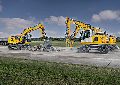 Genauer unter die Lupe genommen wurde im Übrigen auch der L507 E und damit der erste batterieelektrische Radlader aus dem Hause Liebherr, der »besonders leise, lokal und emissionsfrei bei gewohnt hoher Arbeitseffizienz« auf Baustellen unterwegs ist. Aufgrund der bekannten Stereolenkung weist die Maschine einen extrem geringen Wenderadius auf. Zudem gilt der L507 E zu Recht als flexibler Allrounder, da er viele verschiedene Einsatzgebiete abdeckt. Der Radlader der 8. Generation siedelt sich im 6-t-Segment an und kommt auf eine geknickte Kipplast von bis zu 3,7 t bei einem Schaufelvolumen von 1,6 m3. Gezeigt wurde ebenso der Mobilbagger A 916 E mit batterieelektrischem Antrieb, der seinem Dieselpendant im Bereich der Leistungsdaten ebenbürtig sein soll. Die Maschine bewegt sich in der 18-t-Klasse und gilt als echtes Kraftpaket, das enorme Produktivität mit Kompaktheit verbinden soll. Im Inneren verbirgt sich eine Batterie mit 130 kWh Leistung. Drei in Serie geschaltete Batterien mit einer Gesamtleistung von weiteren 130 kWh sind rechts am Oberwagen verbaut worden. Je nach Einsatzort, so der Hersteller, lasse sich der A 916 E bis zu neun Stunden in Betrieb nehmen. Wie für Mobilbagger üblich, besticht auch der A 916 E mit hoher Flexibilität und Geschwindigkeit. Erhältlich ist die Maschine bislang laut Liebherr in ausgewählten europäischen Ländern und hat sich bereits bei ersten Kundeneinsätzen bewähren können.
