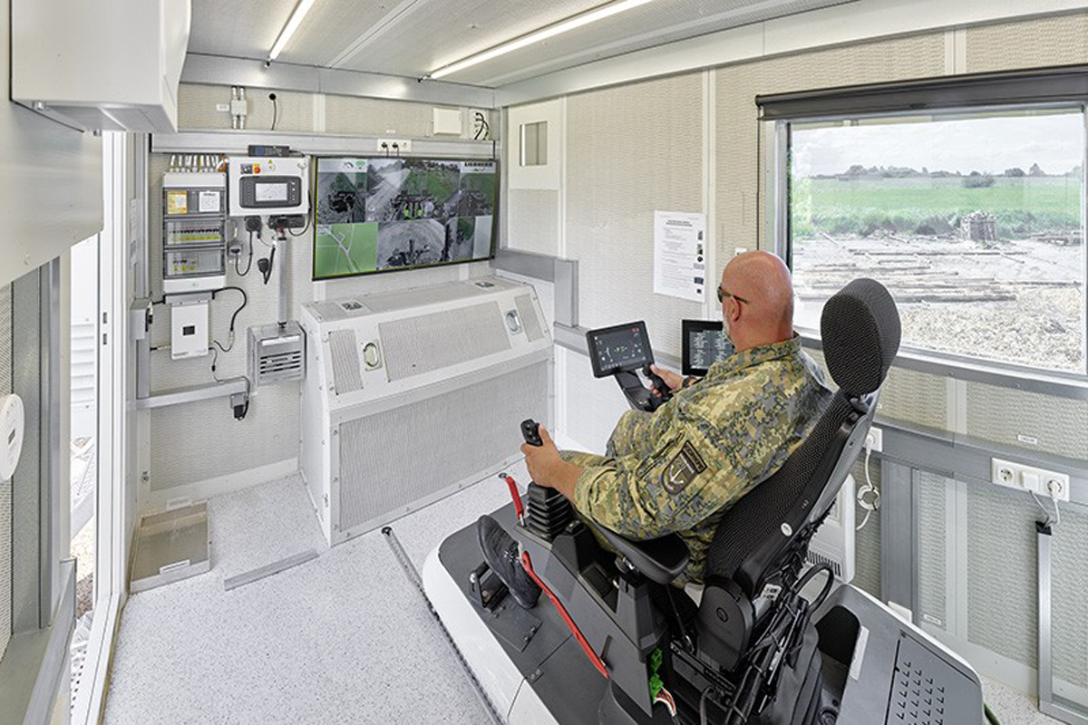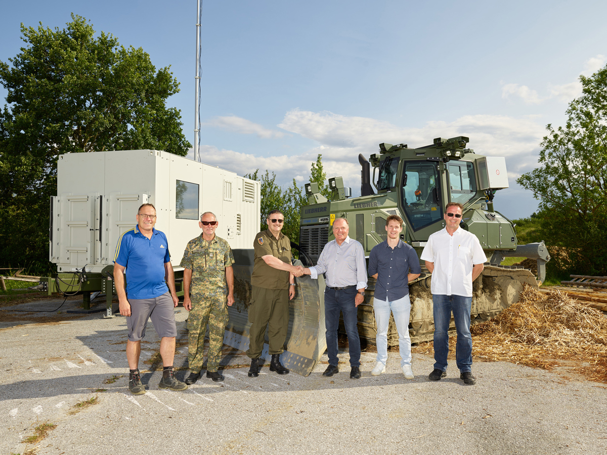 Da das österreichische Bundesheer mit den 2018 ausgelieferten Planierraupen PR 726 von Liebherr zufrieden war, erarbeitete es gemeinsam mit den Liebherr-Produktexperten ein neues, für ihre Bedürfnisse ausgerichtetes Einsatzkonzept. „Der Truppenübungsplatz in Allentsteig ist eine Zone mit vielen Blindgängern, die nach den Übungen wieder entfernt werden müssen. Bisher wurden Räumgeräte mit Splitterschutz und Panzerglas eingesetzt. Trotzdem bestand immer die Gefahr, dass der Fahrer verletzt werden könnte“, sagt Oberstleutnant Dirk Wurth vom Amt für Rüstung und Wehrtechnik, Abteilung Pioniertechnik. Aus diesem Grund gingen die Überlegungen beim Maschinenkonzept in Richtung Teleoperation mit einem voll ausgestatteten Container für eine Funkfernsteuerung der Maschinen. „Mit dem neuen Konzept können wir sowohl gefährliche Einsätze am Truppenübungsplatz als auch schwierige Situationen bei Katastrophenereignissen meistern. Dazu gehören auch Assistenzeinsätze ohne Fahrer in herausforderndem Gelände, wie zum Beispiel bei Hangrutschungen oder beim Räumen von Straßen durch die Pionierbataillone“, erklärt Oberstleutnant Wurth.