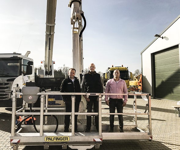 Die MA-BO Arbeitsbühnen GmbH hat ihren Fuhrpark erweitert und setzt dabei auf PALFINGER als starken und verlässlichen Partner. Das traditionsreiche Vermietunternehmen aus Nordrhein-Westfalen hat im Rahmen der Industrieschau in Gronau eine P 260 B, eine P 480 und eine P 750 übernommen und damit das Einsatzspektrum für die Kunden stark erweitert. Schon im Herbst hatte PALFINGER eine P 300 KS an das Gronauer Unternehmen übergeben. Maßgeschneiderte Lösung „Wir haben sehr gute Erfahrungen mit unserer PALFINGER Hubarbeitsbühne gemacht. Unsere Kunden schätzen die einfache Bedienbarkeit und die kompakte Bauweise“, nennt Jan Maarten Van Helden, Geschäftsführer der MA-BO Arbeitsbühnen GmbH, Gründe, warum die Investitionsentscheidung erneut auf PALFINGER Hubarbeitsbühnen fiel. Neben den technischen Details und der Leistungsfähigkeit der Modelle zählte für die MA-BO Arbeitsbühnen GmbH vor allem das maßgeschneiderte Servicepaket. „Wir fühlen uns in sehr guten Händen“, schätzt Jan Maarten Van Helden die individuelle Betreuung. Von der Light Klasse bis zur Jumbo Klasse Mit den insgesamt vier neuen Modellen erweitert das Gronauer Unternehmen das Portfolio und kann seinen Kunden jetzt Hubarbeitsbühnen für ein noch breiteres Einsatzspektrum bieten. Auch hier zählen maßgeschneiderte Lösungen für individuelle Anforderungen. Die P 480 und die P 750 gehören zur Jumbo Klasse NX-Reihe und decken perfekt mittlere bzw. hohe Arbeitsbereiche ab. Dabei verfügen beide Hubarbeitsbühnen durch den X-Jib zwischen Oberarm und Arbeitskorb über eine einzigartige Wendigkeit. Der Arbeitskorb hat einen Bewegungsradius von 240 Grad. Der größte Vertreter der Jumbo NX Reihe ist die P 750. Sie erlaubt Arbeiten bis 75 Meter Höhe und hat eine maximale seitliche Reichweite von 39 Metern.