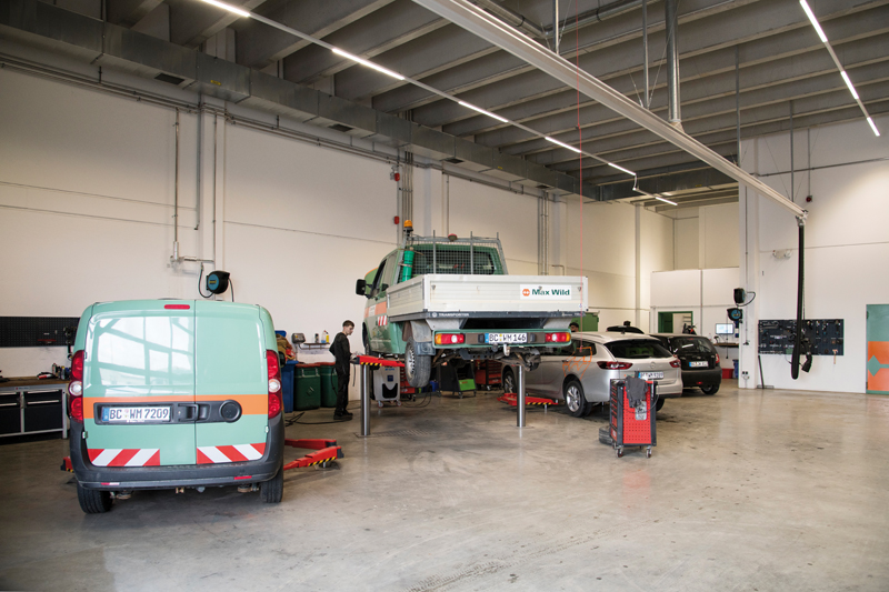 Rund 10 Mio. Euro hat das im Jahr 1955 von Max Wild sen. gegründete Familienunternehmen in diesen Neubau investiert, der im August vergangenen Jahres in Betrieb genommen wurde und in dem das komplette Spektrum an Wartungs- und Reparaturarbeiten angeboten wird. Das reicht vom Kundendienst über Haupt- und Abgasuntersuchung oder UVV-Prüfung, Lackier- und Spenglerarbeiten, Generalüberholungen bis hin zu Unfallinstandsetzungen, Schweißarbeiten und der Anfertigung von Stahlkonstruktionen in der eigenen Schlosserei.