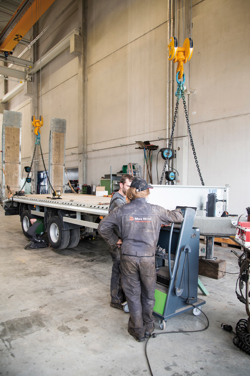 »Schon in unserer alten Werkstatt haben wir immer gut zu tun gehabt mit den Wartungen und Reparaturen unserer eigenen Fahrzeuge und Maschinen«, sagt Daniel Wild. »Doch weil sich mit der stetigen Weiterentwicklung des Unternehmens auch unser Fuhrpark immer mehr vergrößert hat, mussten wir reagieren, um den Anforderungen an Wartung und Reparaturen gerecht werden zu können.« Daraus sei schließlich die Idee entstanden, ein Servicecenter neu zu bauen, das allen offen steht.«