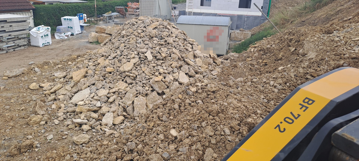 Ein süddeutsches Erdbauunternehmen wurde mit dem Aushub einer Baugrube beauftragt und sah sich mit großen Mengen an Felsgestein konfrontiert. Um sich den Abtransport der Materialien zu ersparen, kam ein MB Crusher Brecherlöffel »BF 70.2 S4« zum Einsatz. Damit konnte das angefallene Felsgestein direkt vor Ort zerkleinert werden. Die unmittelbare Verarbeitung des Materials ermöglichte dem Unternehmen, auf die passende Größe gebrochen, die direkte Wiederverwendung auf der Baustelle: zum Verfüllen, Erstellen von Baustraßen sowie als Untergrund. Durch den Einsatz des Brecherlöffels wurden Zeit und Kosten gespart, da kein zusätzlicher Abtransport des Materials und der Neukauf von Materialien erforderlich waren.