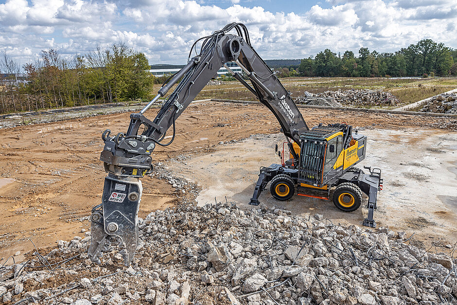 Für diese Baustelle und anstehende Projekte ergänzte man die eigene Anbaugerätepalette mit einer leistungsfähigen Kombischere für Bagger der 35-t-Klasse in Form einer MBI CC35-R. »Wir sind mit der Leistung der MBI-Anbaugeräte sehr zufrieden und seit nunmehr vier Jahren begeisterte MBI-Kunden. Deshalb stand fest, dass bei Neuanschaffungen MBI-Anbaugeräte in Erwägung gezogen werden müssen«, betont Geschäftsführer Dominik Austen.