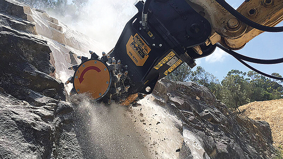 Neben den bekannten MB-Backenbrecher- und Sieblöffeln, die auf den meisten Baggern und Radladern jeder Baustelle eingesetzt werden können, wird in Neumünster mit der neuen MB-R-800 ein Vertreter des neuen MB-Anbaufräsentrios vorgestellt. Neben dem Abbruchbereich können alle drei auch für Sanierungen, Grabenöffnungen, im Gewinnungseinsatz in Steinbrüchen, im Spezialtiefbau und im Straßenbau angebaut werden. Alle drei Modelle kennzeichnen 350 bar Druck und eine 4-bar-Leckölleitung.
